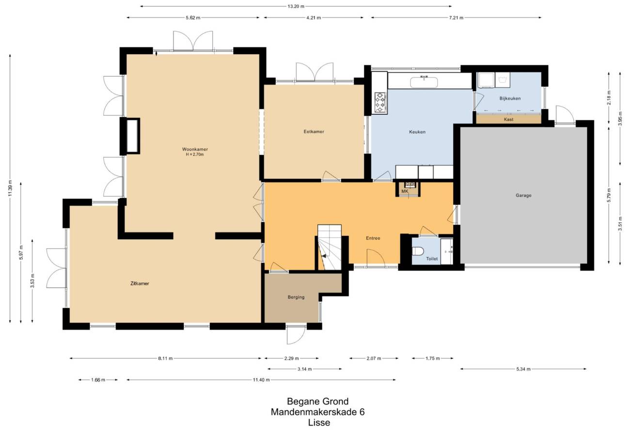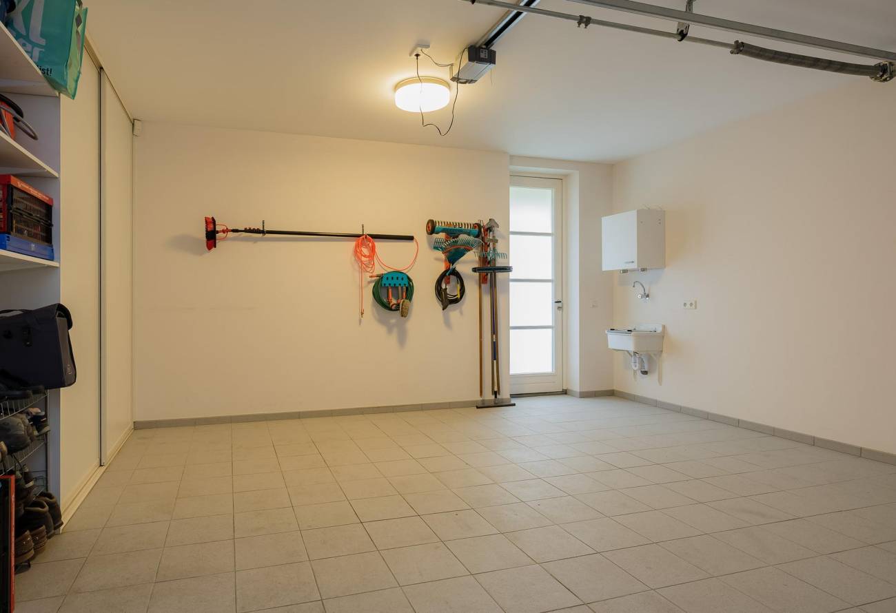 Vanuit de hal is er toegang tot de garage waar plaats is voor 2 auto’s. Tevens is er een schuifdeurkast en een spoelbak.