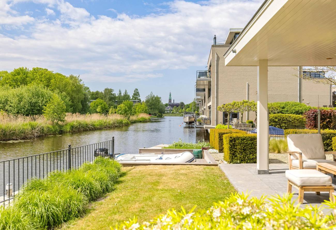 Onder architectuur aangelegde tuin biedt volop ruimte om te genieten. Vanaf meerdere terrassen heeft u een vrij uitzicht op het water. De aanlegsteiger van 50 meter biedt plaats voor meerdere boten, ideaal voor watersportliefhebbers.