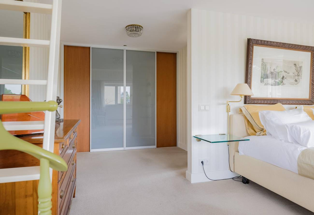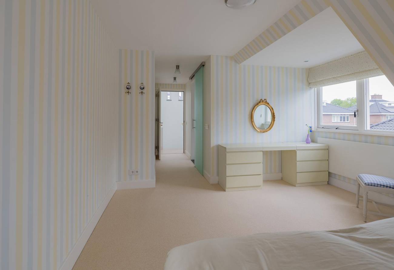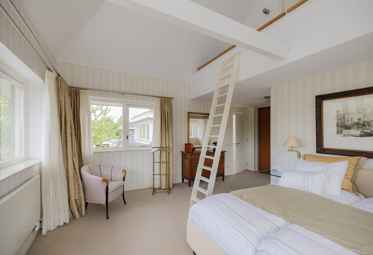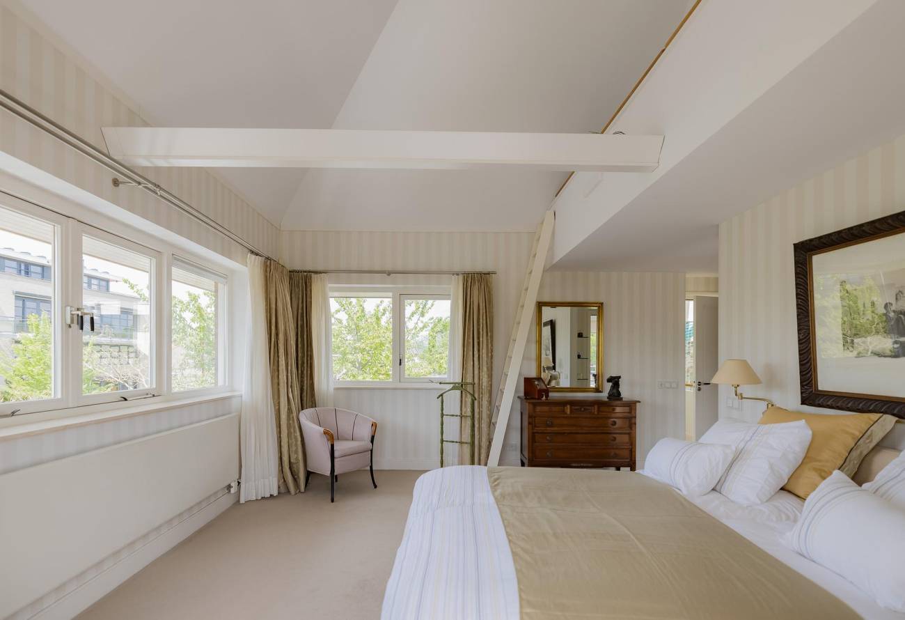 De drie grote slaapkamers zijn licht en ruim. De master bedroom beschikt over een eigen badkamer, een inloopkast en een loggia. De badkamer en de slaapkamer hebben beide een deur naar de loggia. Een tweede slaapkamer heeft eveneens een eigen badkamer. De derde, zeer royale kamer met dakkapel is in gebruik als werkkamer. De bergzolder waar de cv-ketel staat is bereikbaar via de master bedroom.