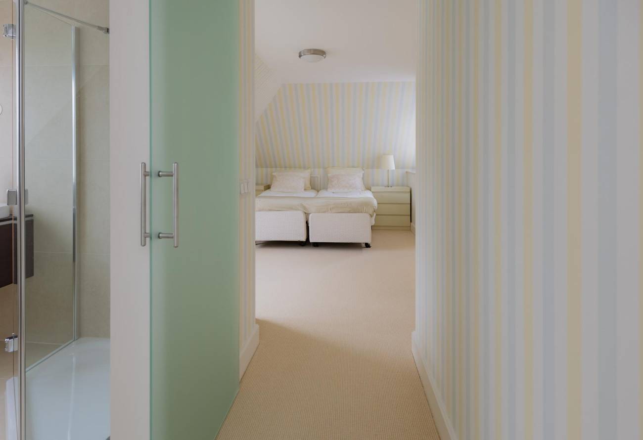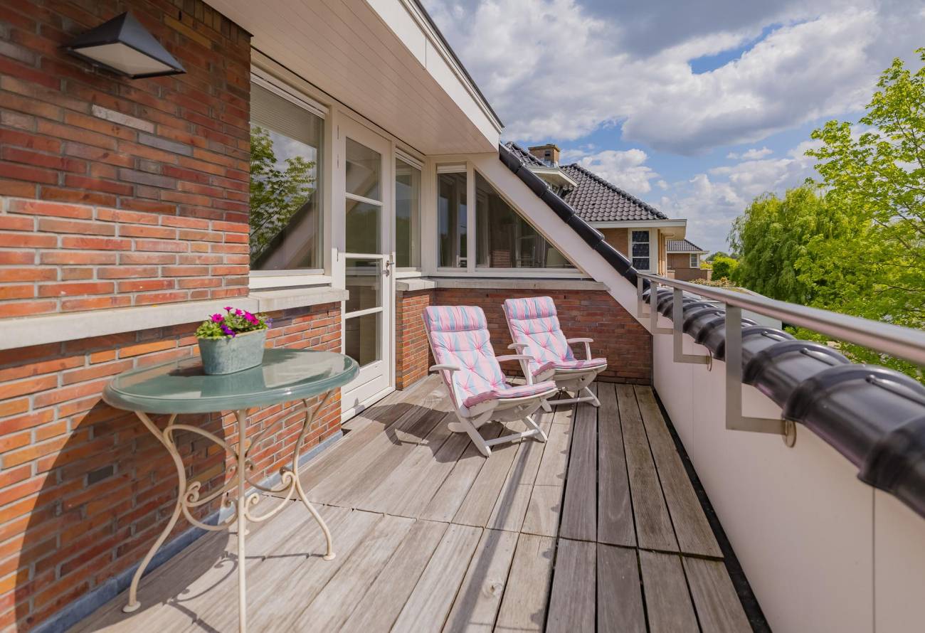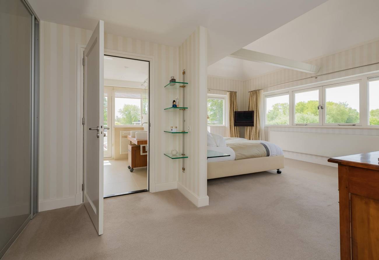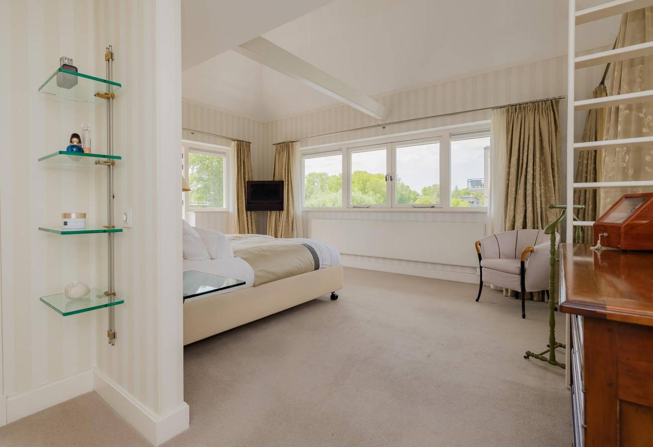 De drie grote slaapkamers zijn licht en ruim. De master bedroom beschikt over een eigen badkamer, een inloopkast en een loggia. De badkamer en de slaapkamer hebben beide een deur naar de loggia. Een tweede slaapkamer heeft eveneens een eigen badkamer. De derde, zeer royale kamer met dakkapel is in gebruik als werkkamer. De bergzolder waar de cv-ketel staat is bereikbaar via de master bedroom.