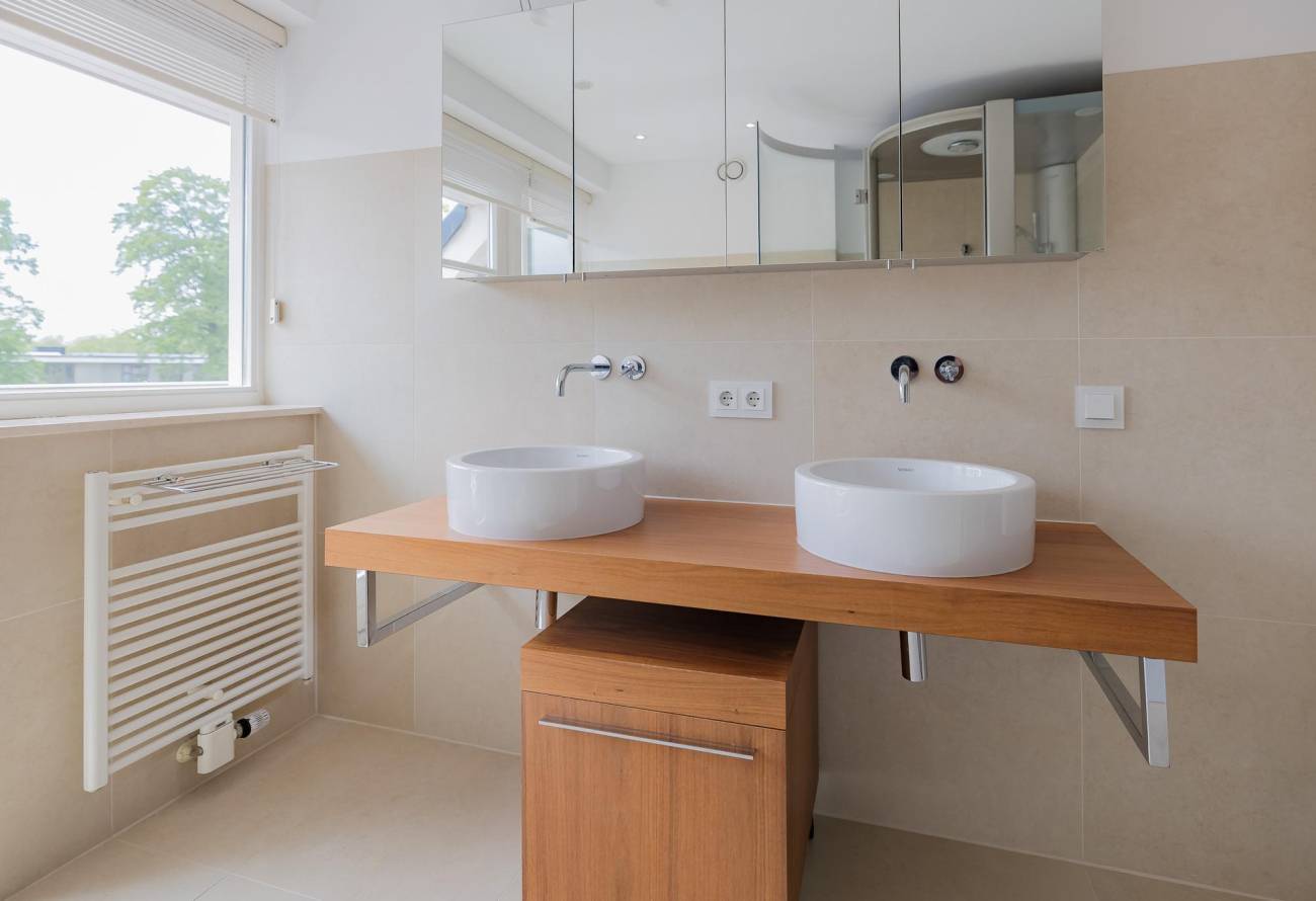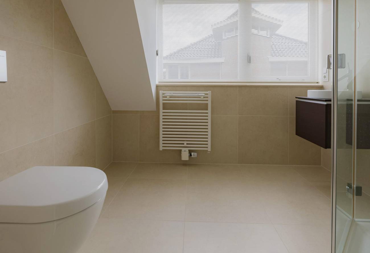 De tegelvloeren van de begane grond: keuken, bijkeuken, toilet, berging en garage zijn voorzien van vloerverwarming.