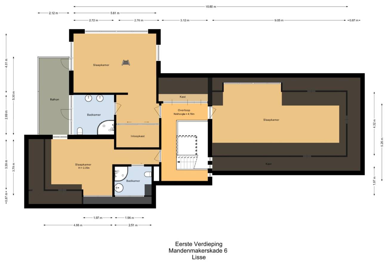 | Bathrooms | 2 badkamers, 1 aparte toiletten |