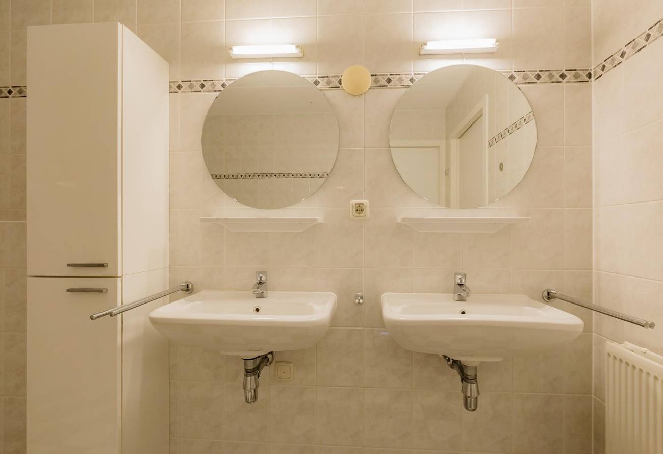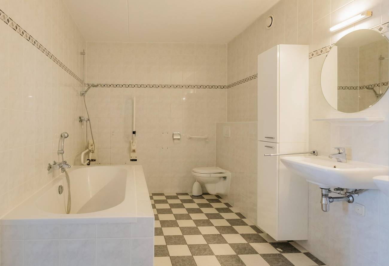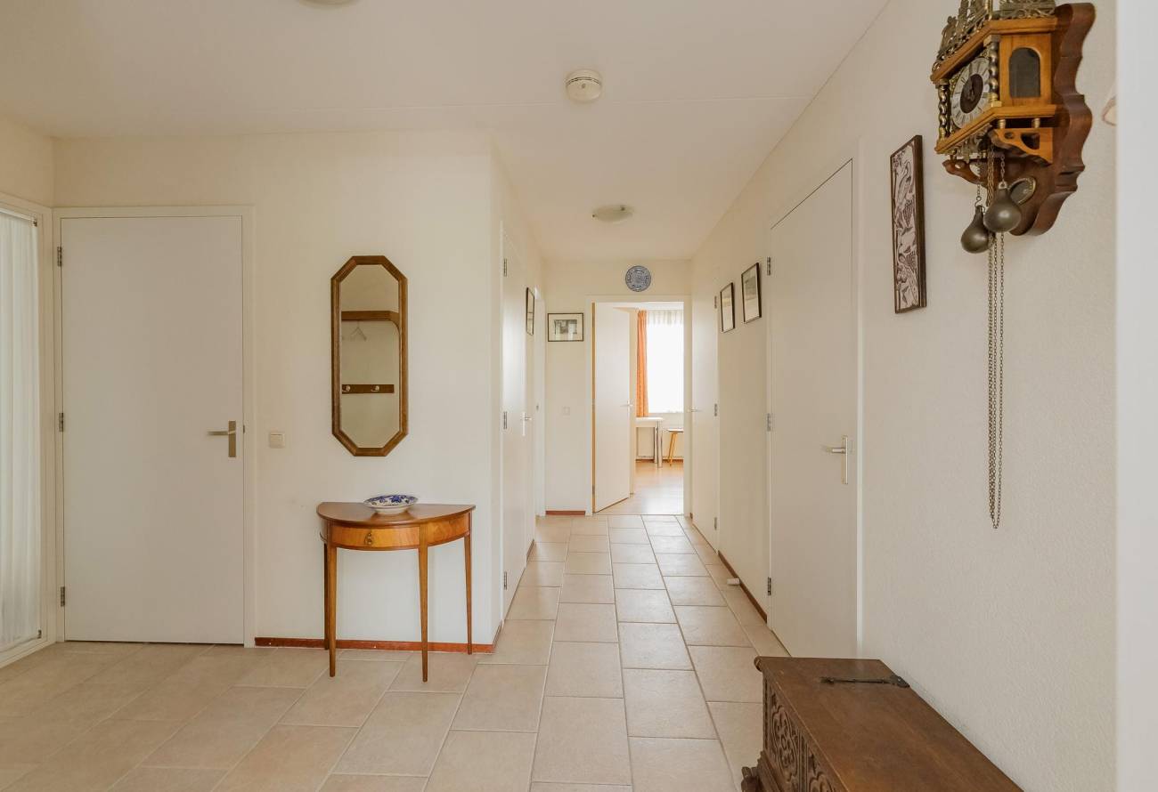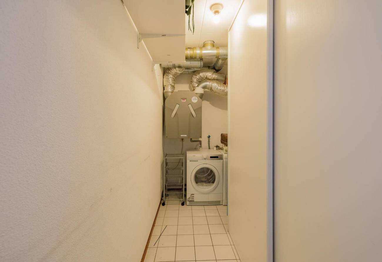 Tevens is er een grote betegelde berg-/wasruimte met schuifkastenwand, aansluitingen wasapparatuur en gebalanceerd ventilatiesysteem. Het appartement is o.a. voorzien van houten binnen kozijnen met stompe deuren.