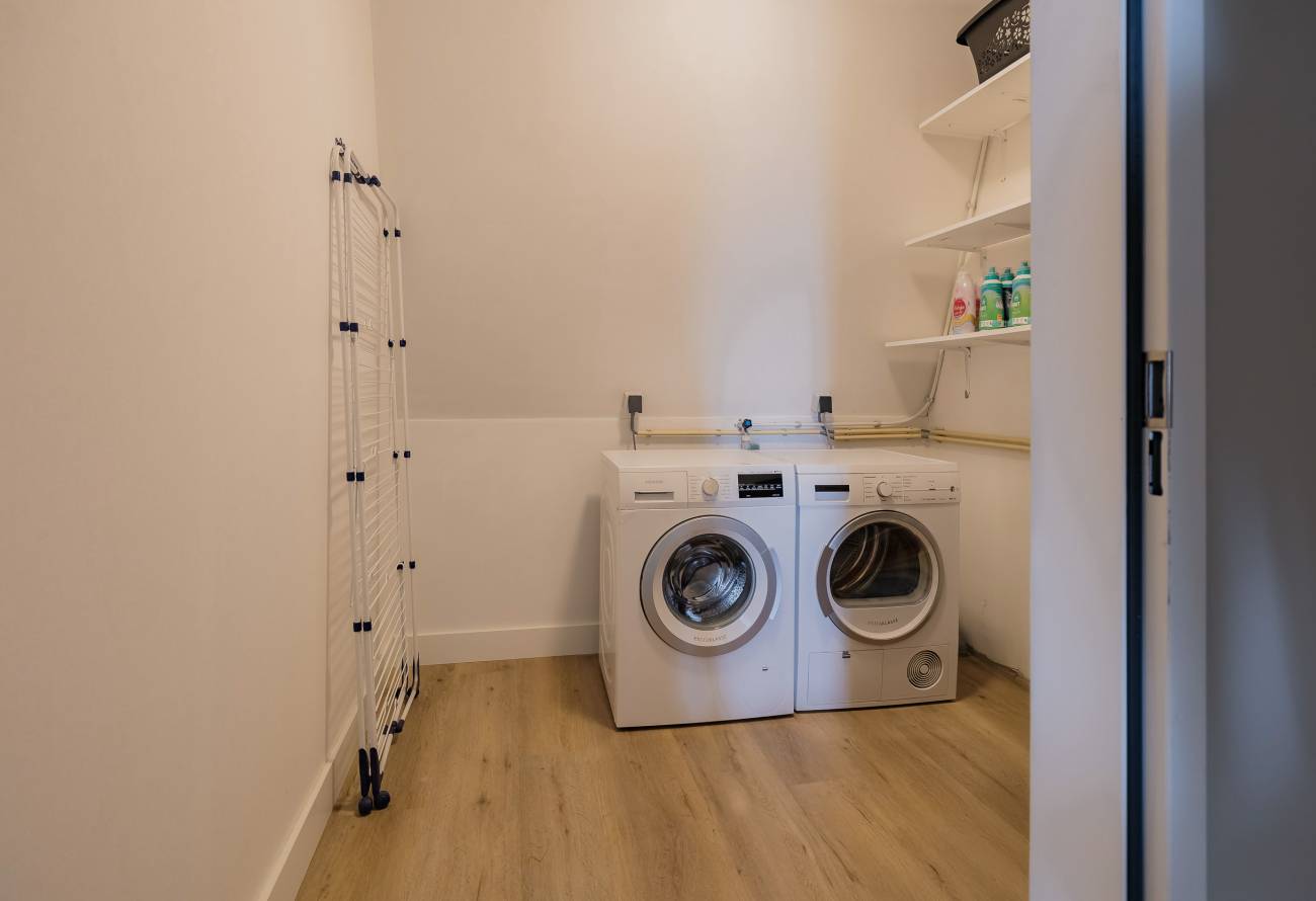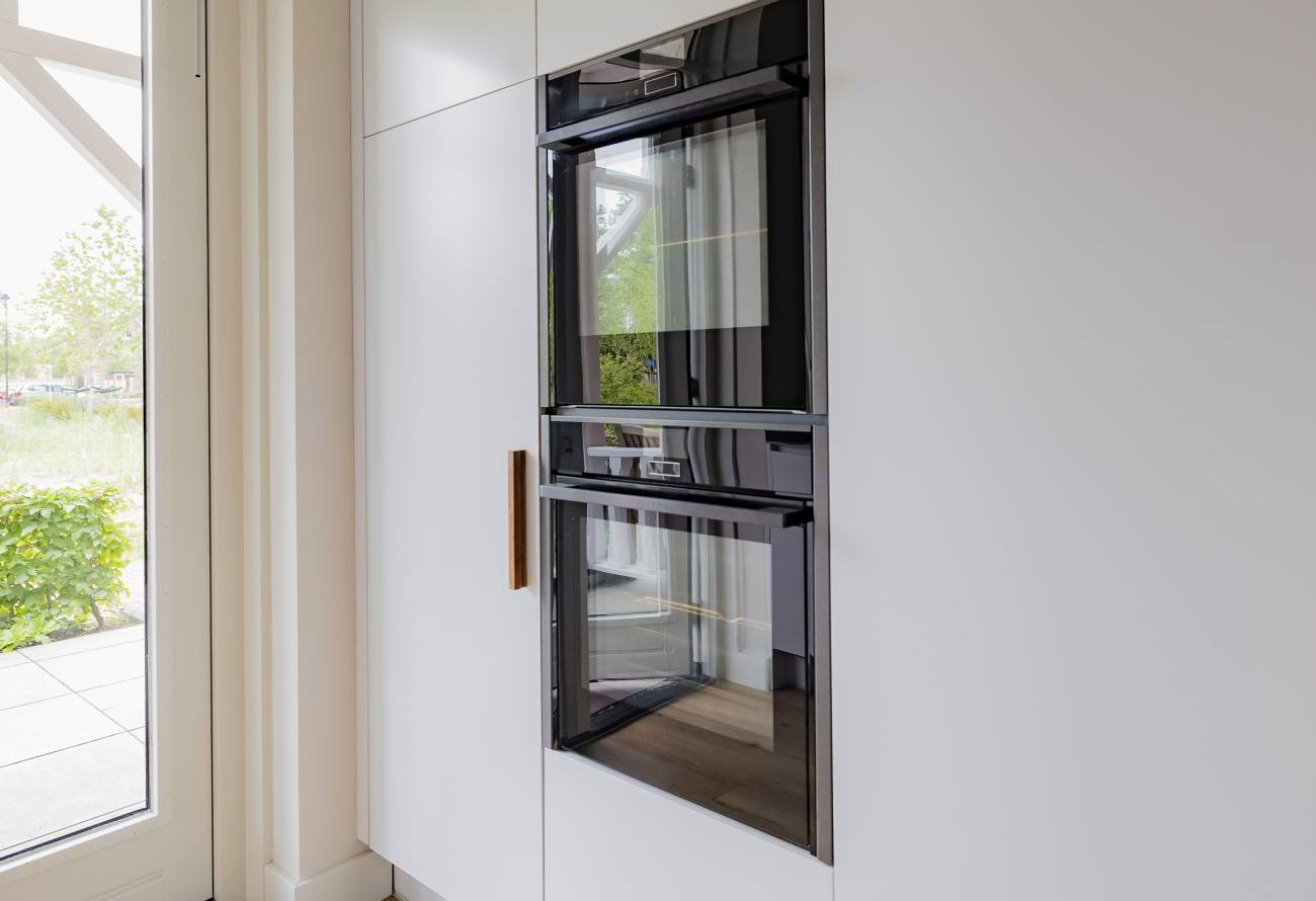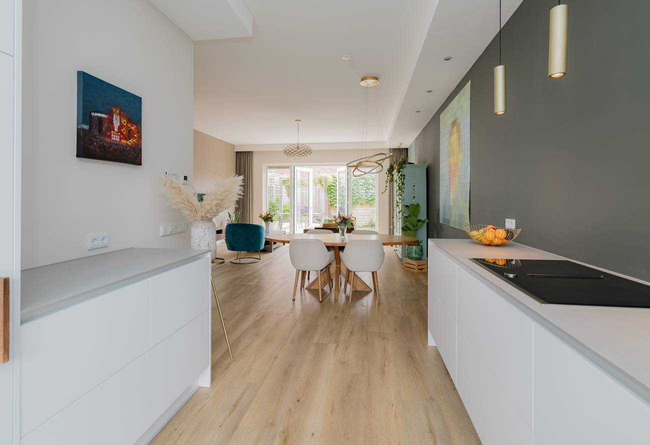 De open keuken is een echte eyecatcher: modern, royaal van opzet en van alle gemakken voorzien. Met twee ovens (waaronder een stoomoven), een Quooker en een strakke kookplaat kook je hier op topniveau, terwijl je toch in contact blijft met het gezin of je gasten. De openslaande deuren geven toegang tot de veranda.