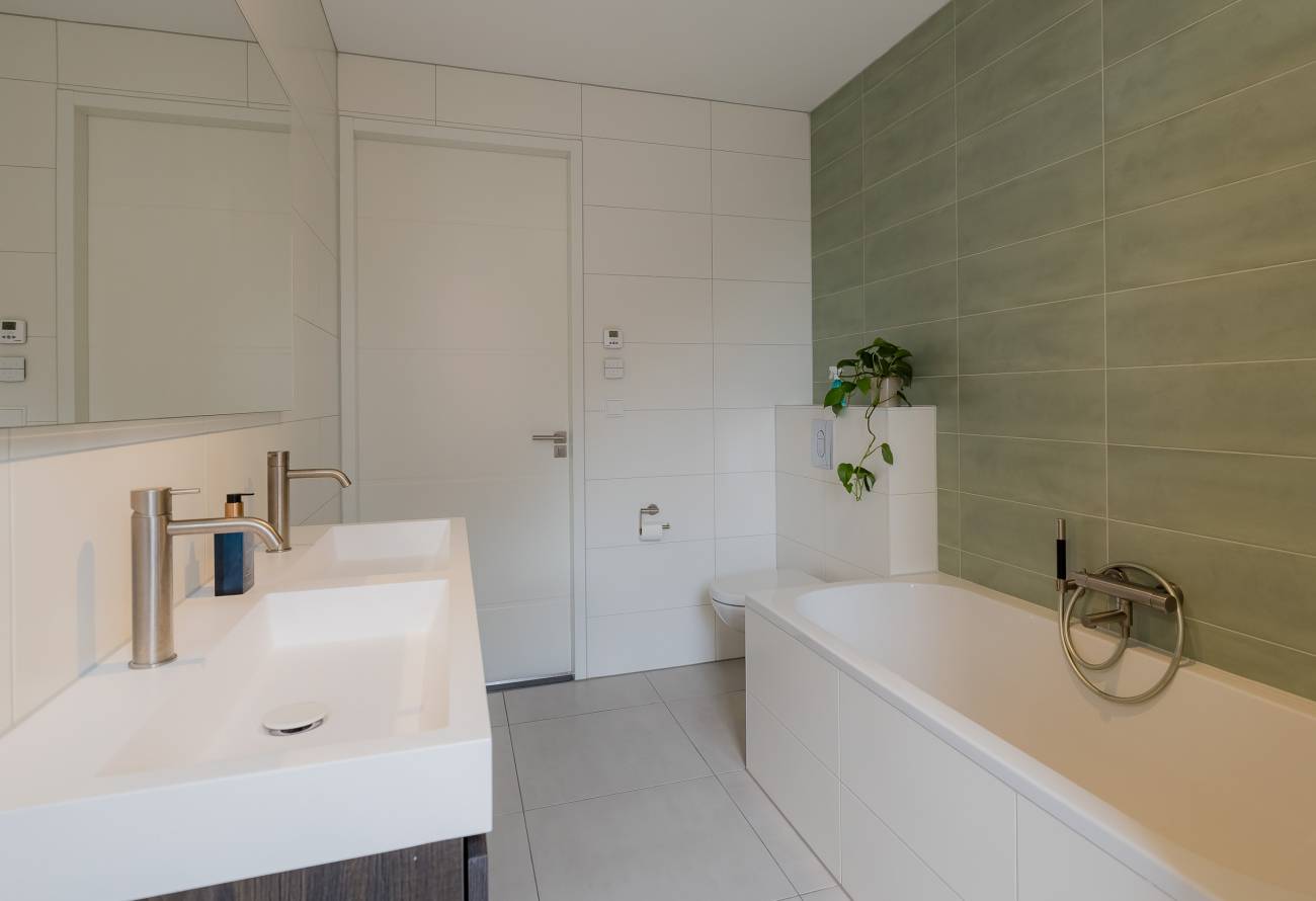 Op de eerste verdieping vind je drie goed bemeten slaapkamers en badkamer. De badkamer is uitgerust met een comfortabel ligbad, inloopdouche, wastafelmeubel, toilet en dit alles in een moderne afwerking.