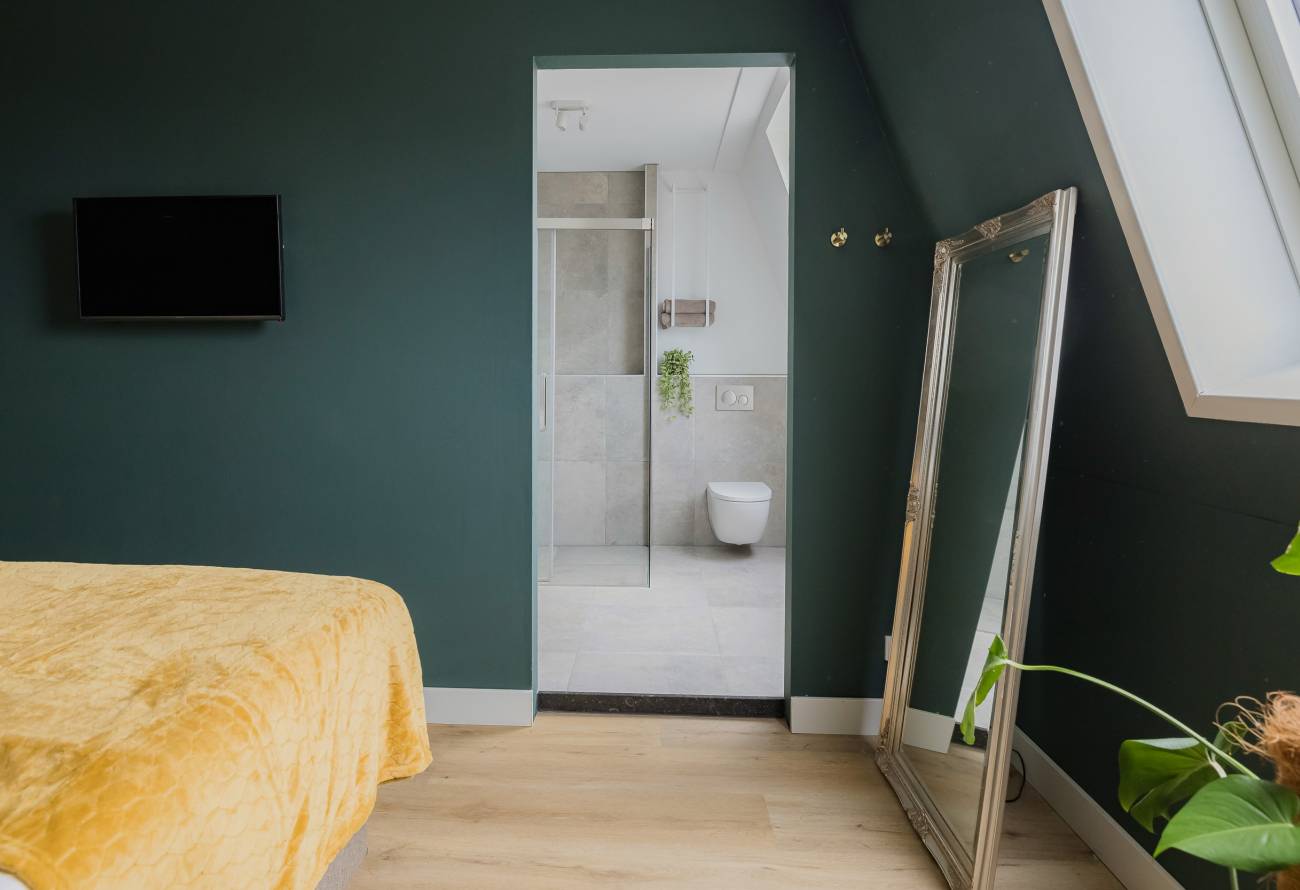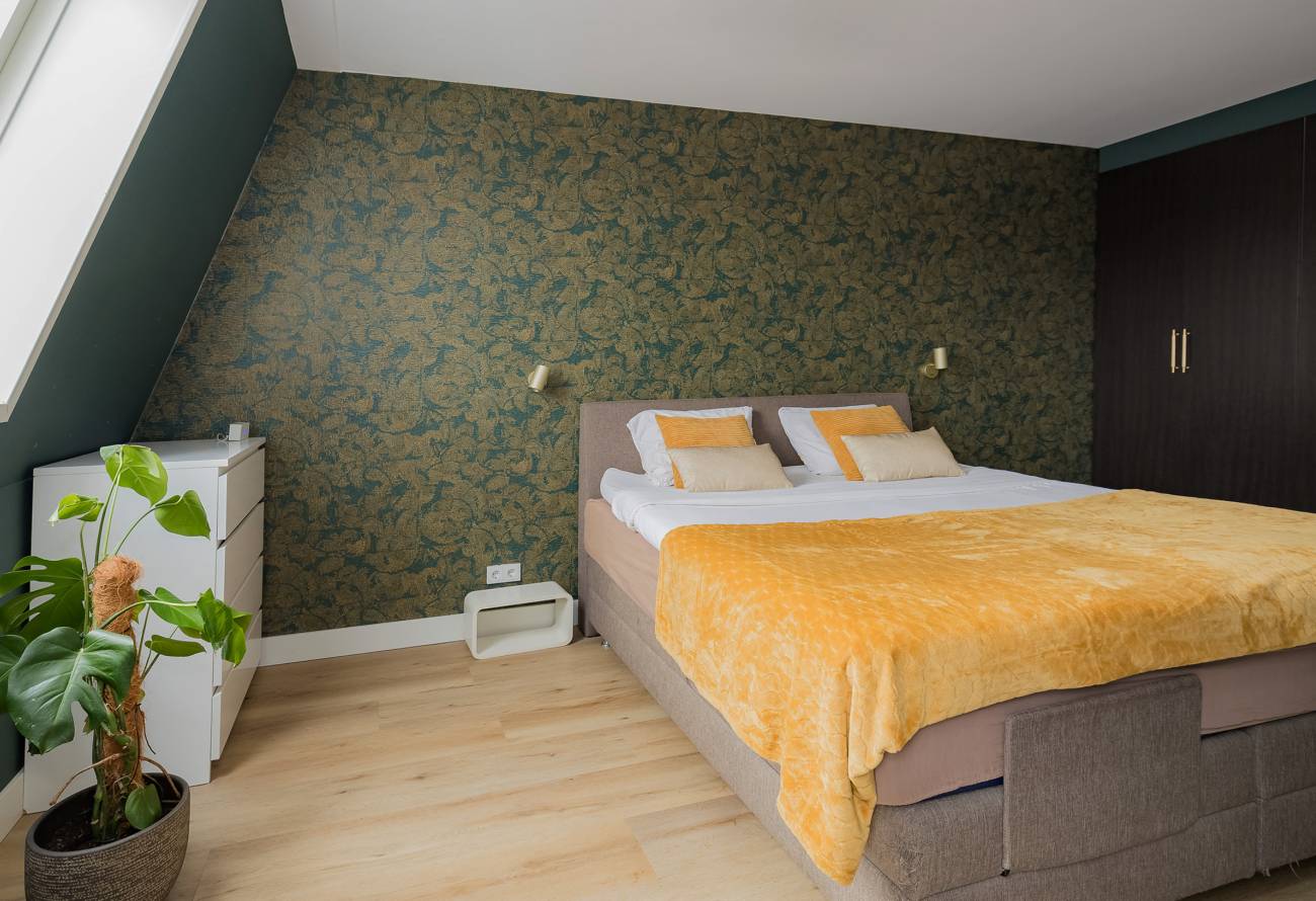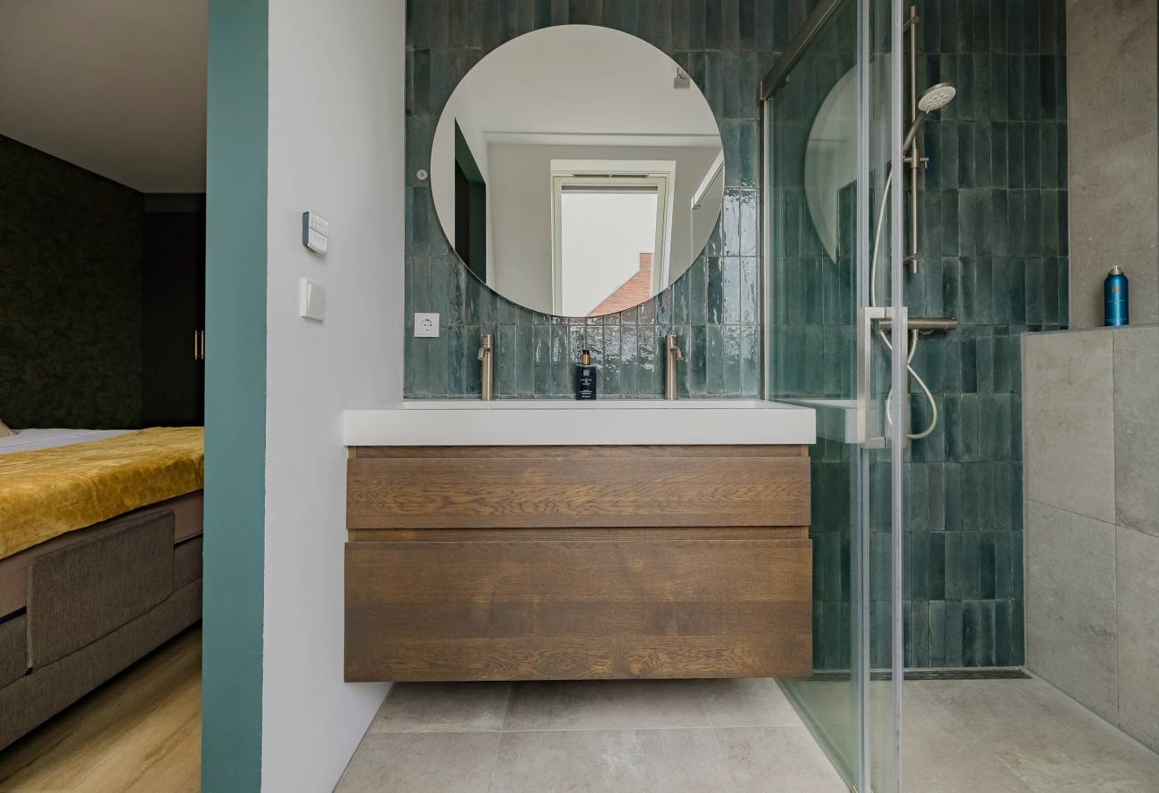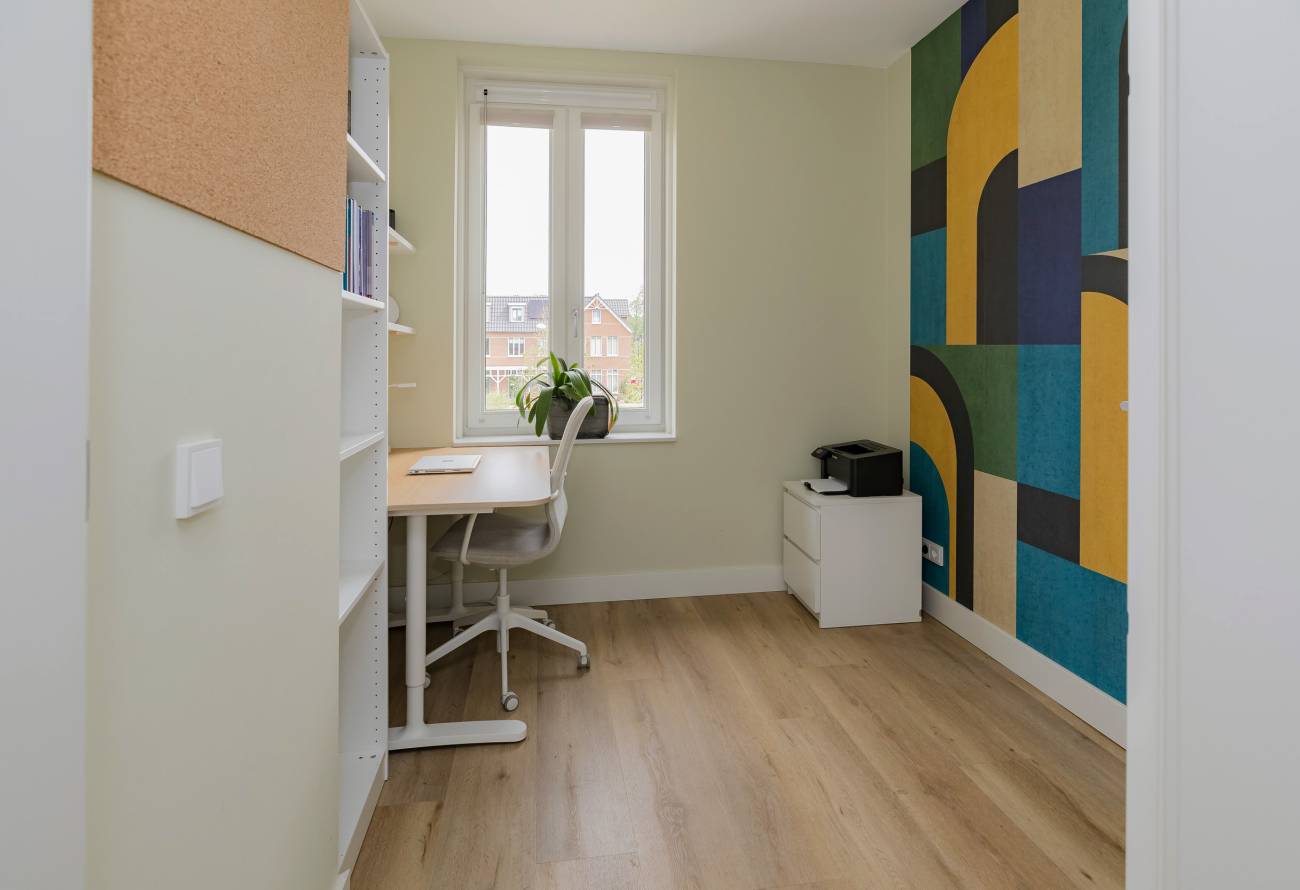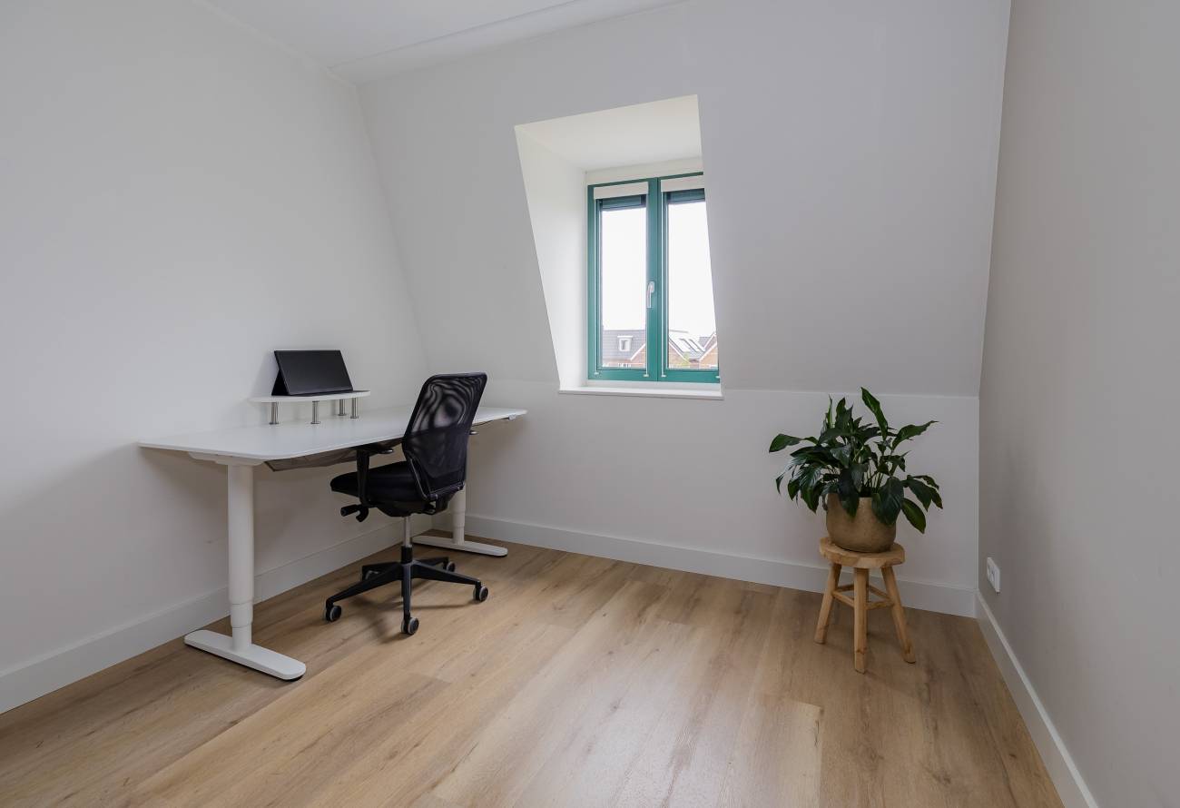 En dan de zolder – die voelt als een privéverblijf op zich. Hier bevindt zich een ruime slaapkamer met tweede badkamer en suite voorzien van inloopdouche, wastafelmeubel en toilet, een grote werk-/logeerkamer, een efficiënt ingerichte bergruimte én een volledig aparte wasruimte.