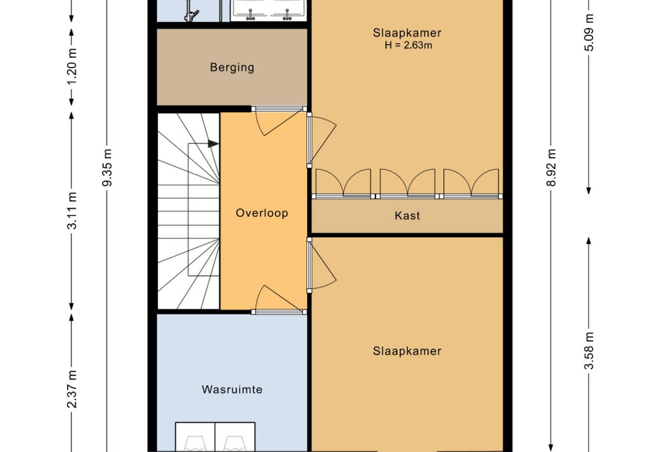 - Zolderetage voorzien van keurig afgewerkte inbouwkasten;