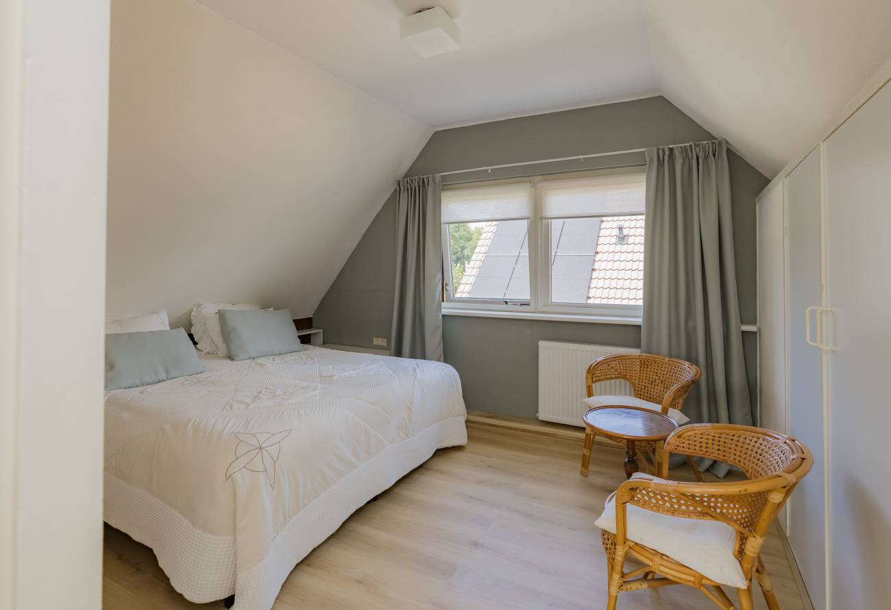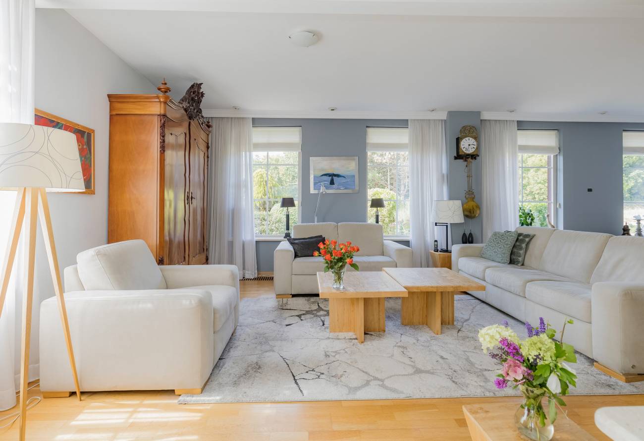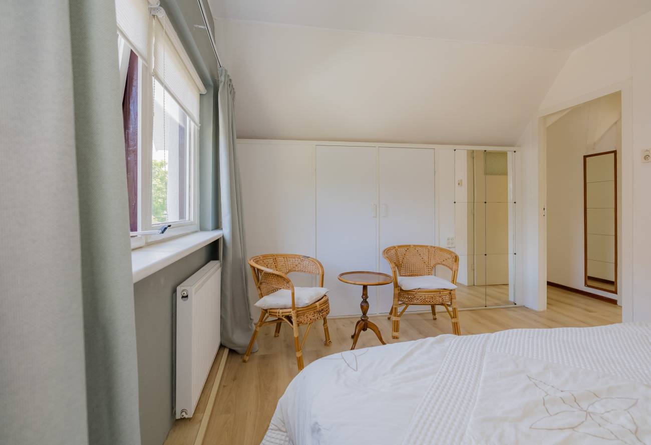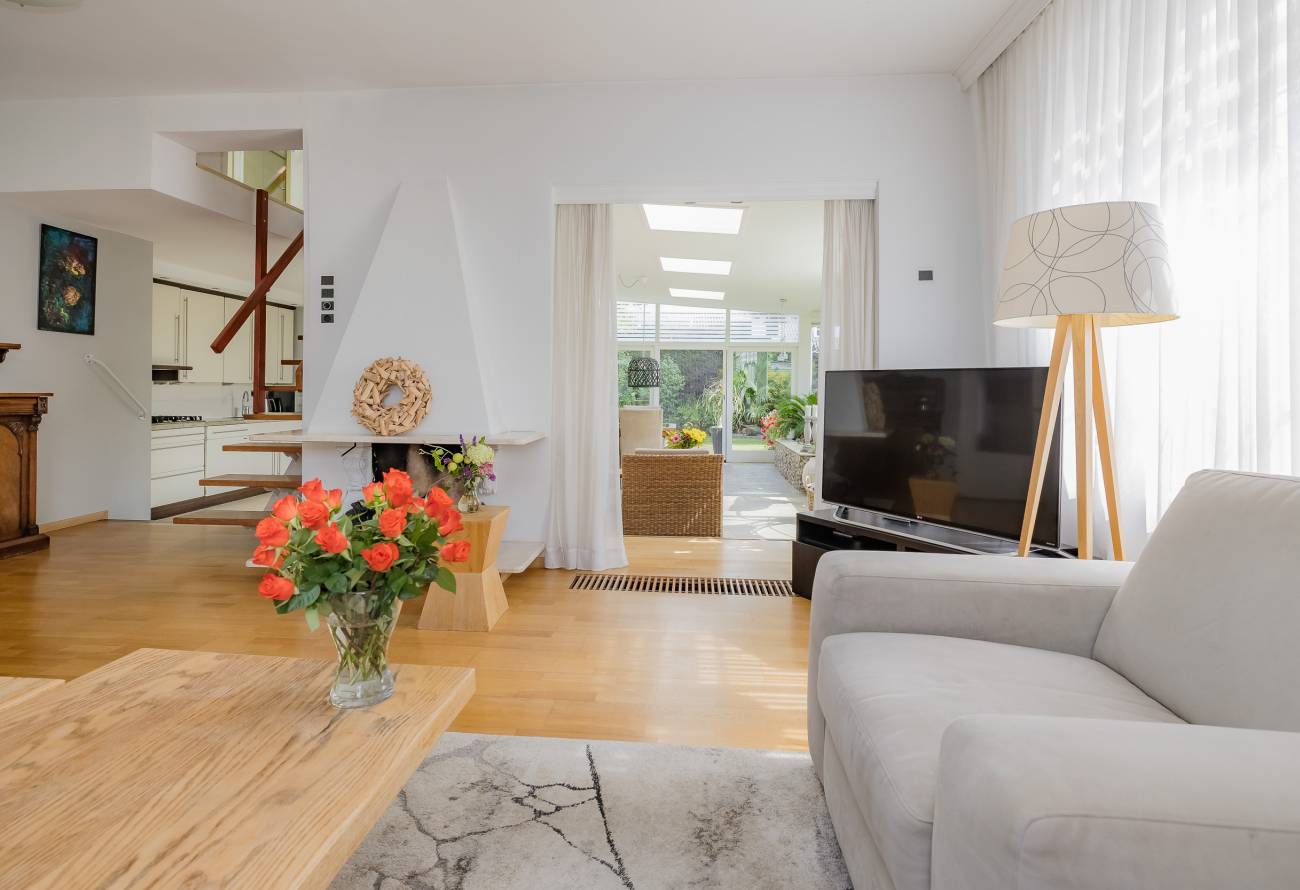 Een absolute eyecatcher is de aangebouwde serre/tuinkamer: een lichte ruimte met drie dakkoepels, vele ramen en openslaande deuren naar de tuin. Hier zijn binnen en buiten prachtig verbonden. De aanwezige houtkachel maakt dit bovendien een plek waar je het hele jaar door in knusse sfeer kunt genieten – van zonnige ochtenden tot winterse avonden.