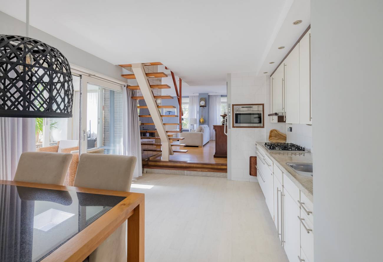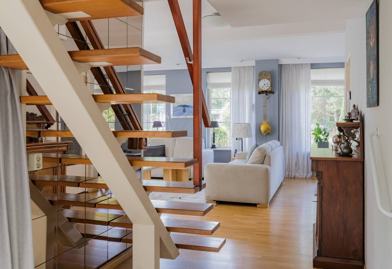 Vanuit de woonkamer leidt een open trap naar de eerste verdieping.