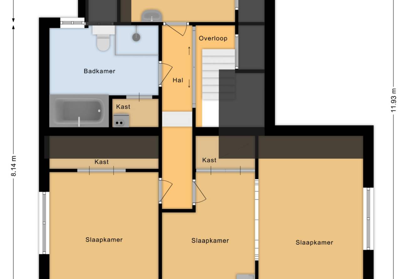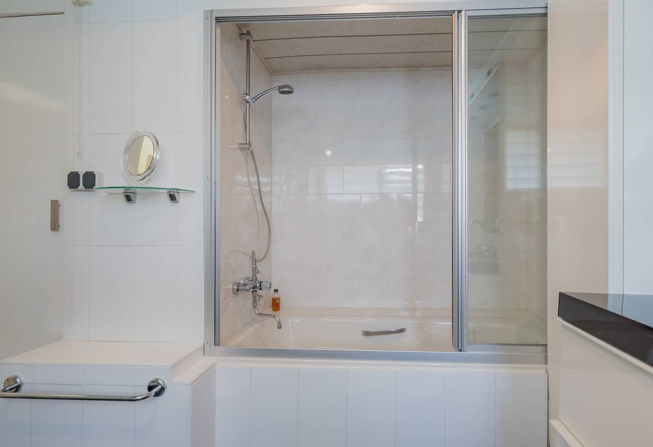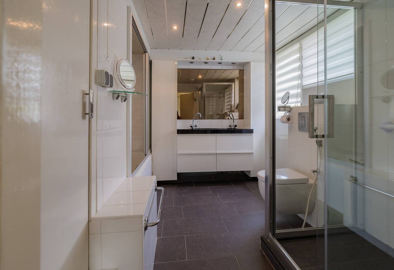 De overloop, met prettig daglicht, geeft toegang tot 3 slaapkamers en de badkamer. De hoofdslaapkamer aan de voorzijde is zeer ruim en beschikt over een inbouwkast, wastafel, schuifpui naar het balkon én ruimte voor een eigen zithoek. Slaapkamer 2 heeft eveneens een wastafel, terwijl slaapkamer 3 is voorzien van een praktische inloopkast. De luxe badkamer is royaal opgezet met een inloopdouche, ligbad, toilet, dubbel wastafelmeubel en veel opbergruimte.