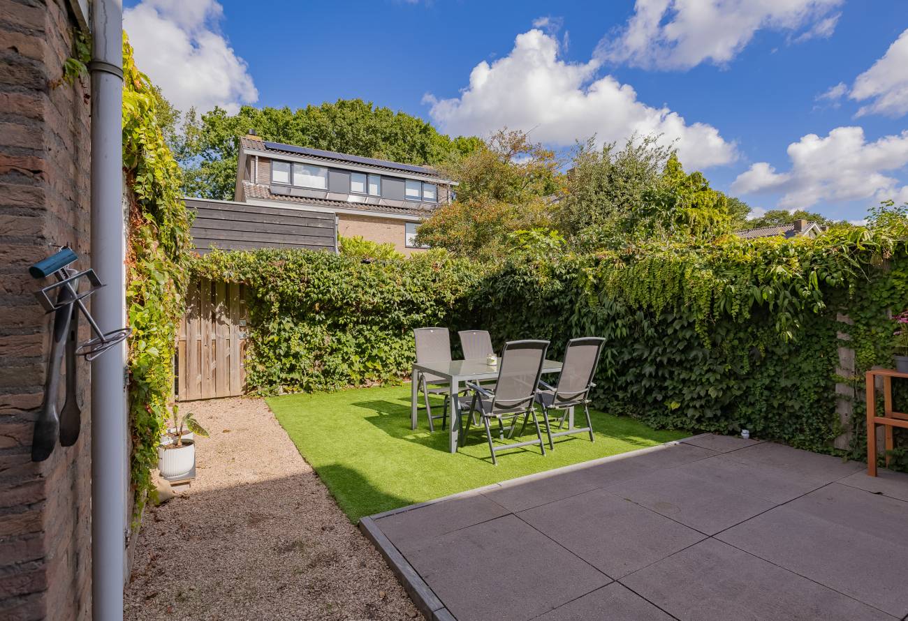 Met een vrij uitzicht over de groene laan, een zonnige voortuin en leuke achtertuin met een verzorgd terras, een stenen schuur met elektra en achterom woon je hier heerlijk rustig, maar toch heel centraal.