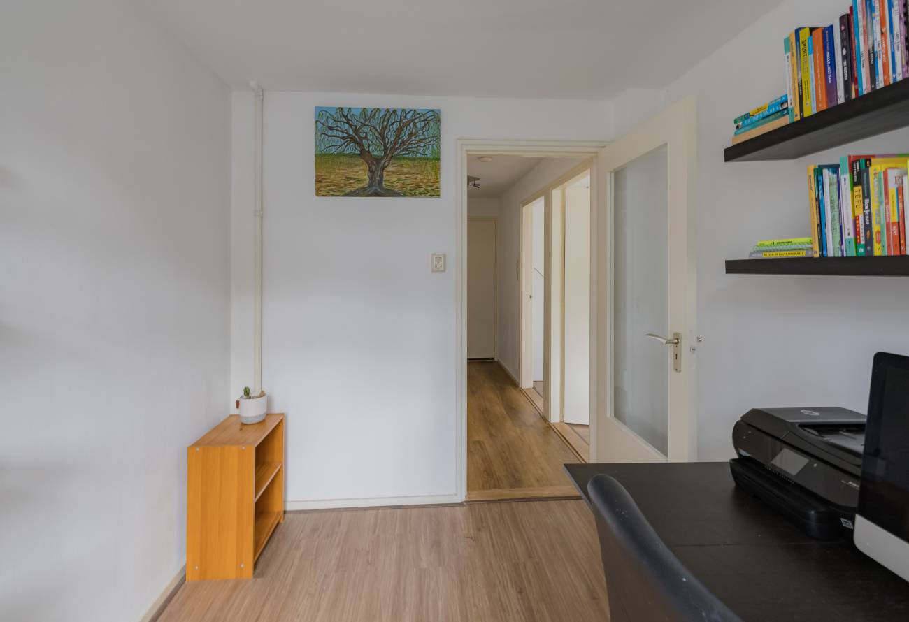 Op de overloop vind je een tweede toilet. Aan de voorzijde een ruime slaapkamer met balkon, vrij uitzicht en zonwering. Aan de achterzijde nog een grote slaapkamer en een derde kamer.