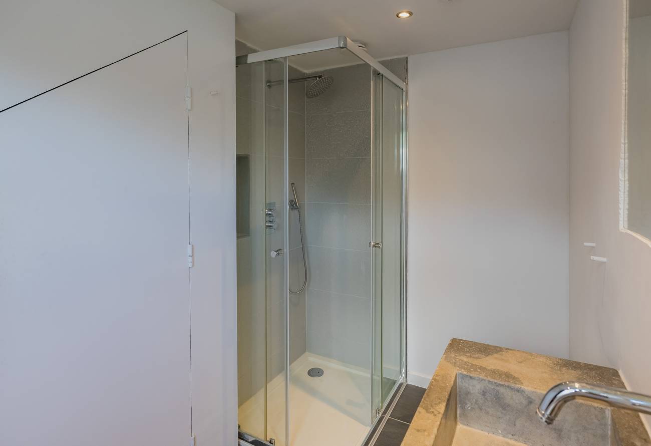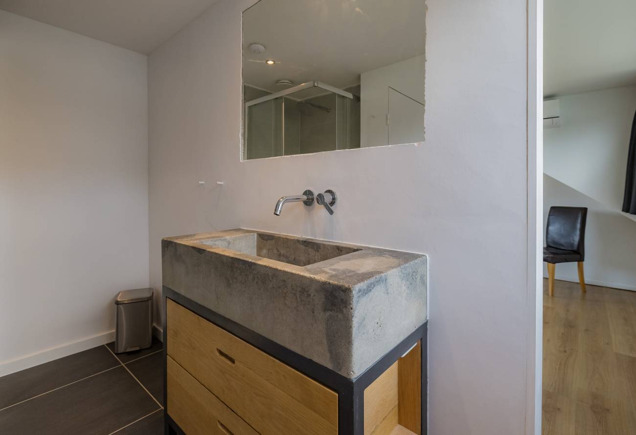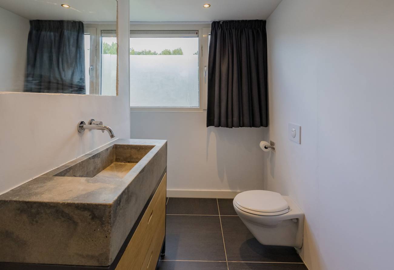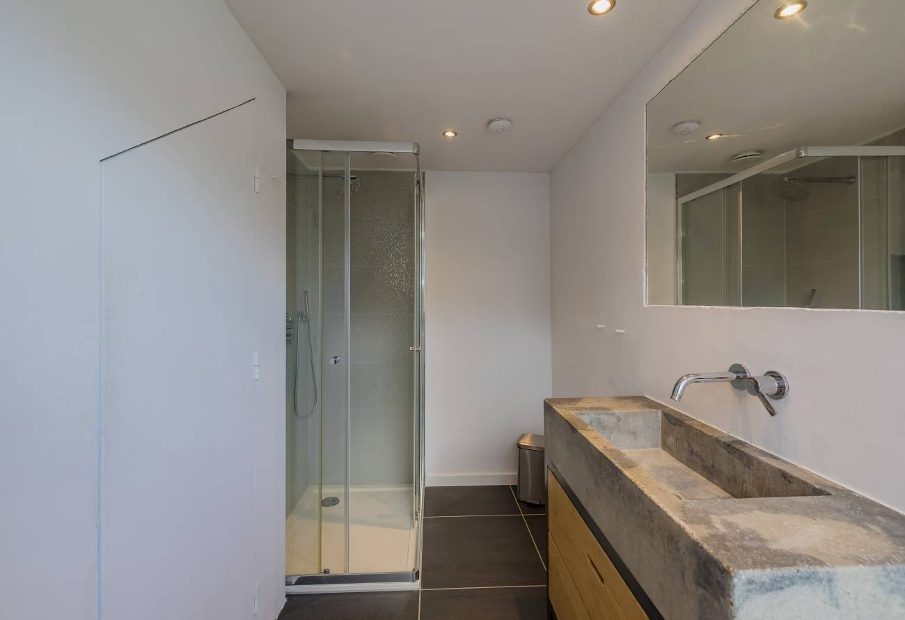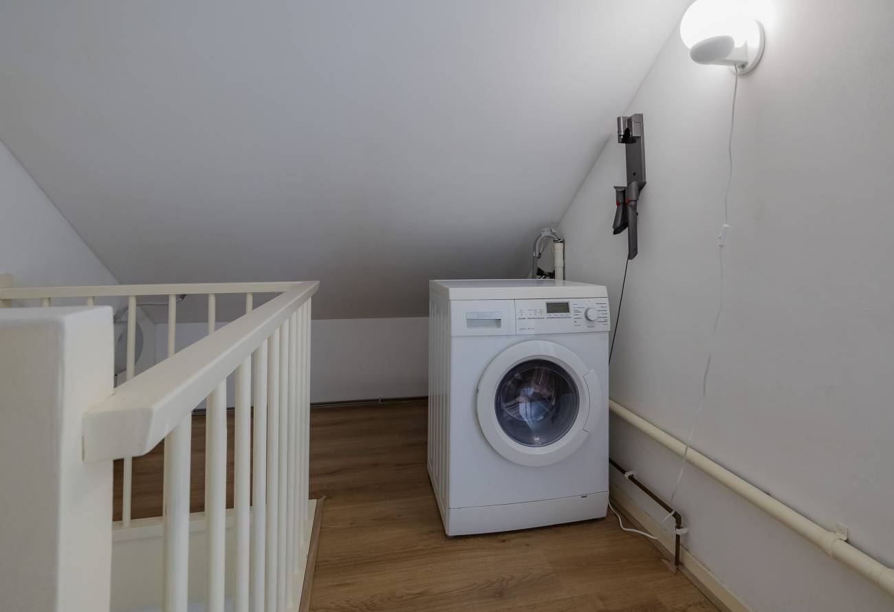 Op de 2e etage vinden we een wasruimte, opstelling van de cv-installatie en de tweede moderne badkamer met douche, ruime wastafel en een toilet.