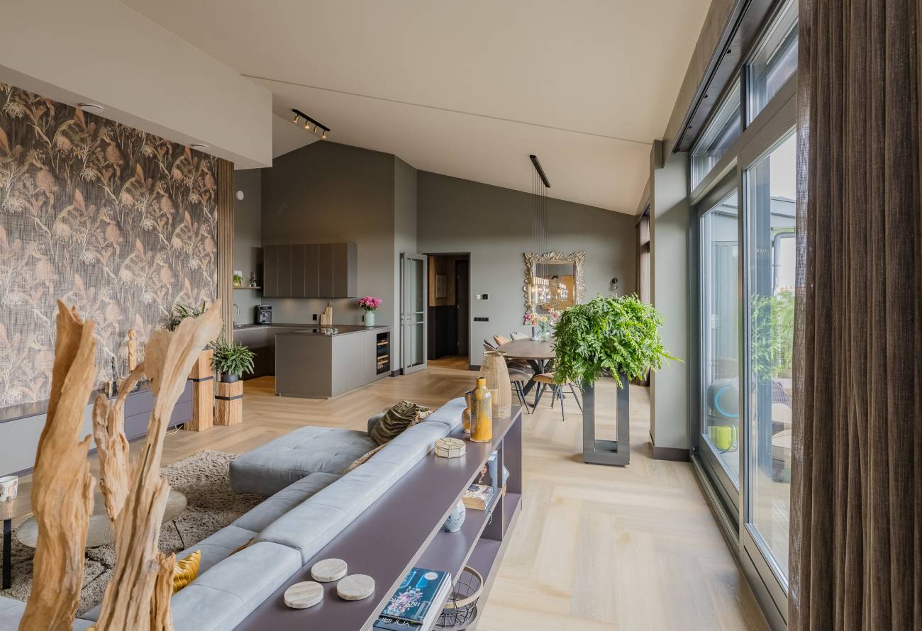 De sfeervolle moderne woonkamer sluit naadloos aan op het zonnige terras op het zuidoosten, perfect voor een rustige ochtend en middag in de zon. Het tweede terras aan de westkant geeft je een fantastisch uitzicht over de Amsterdamse Waterleidingduinen en de zonsondergang.