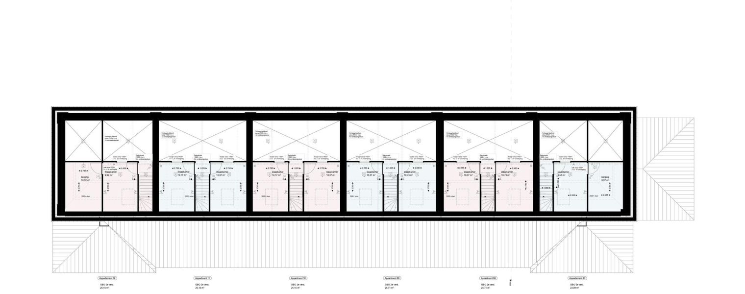 12 Koopappartementen met buitenruimten en een parkeerplaats.