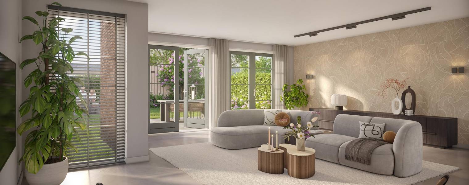 - Tuingerichte woonkamer van bijna 7,5 meter breed