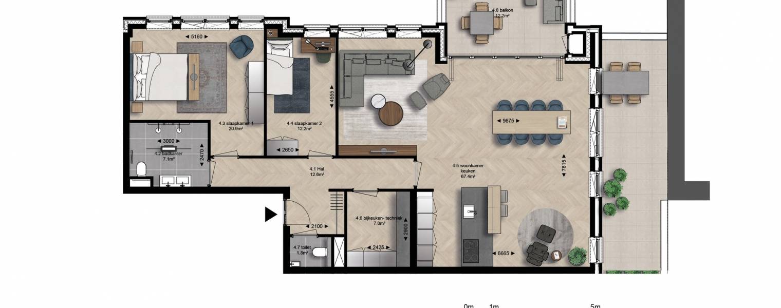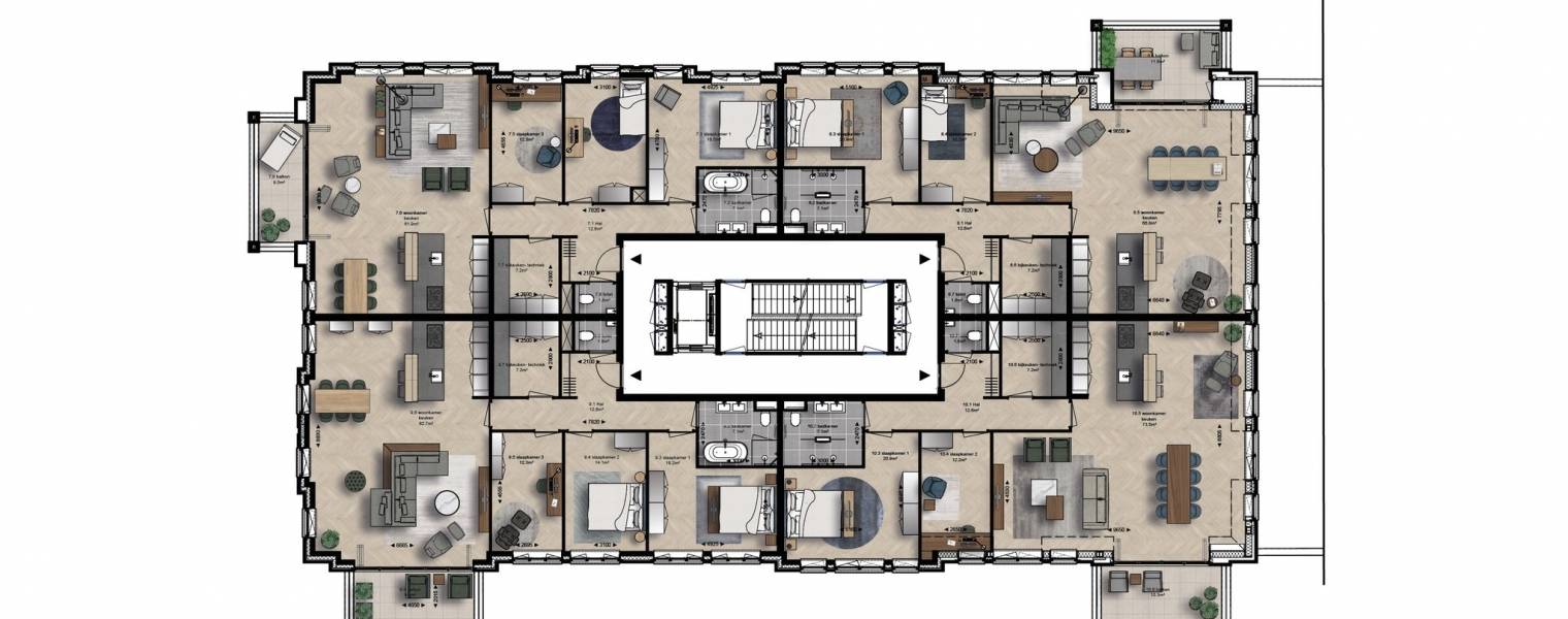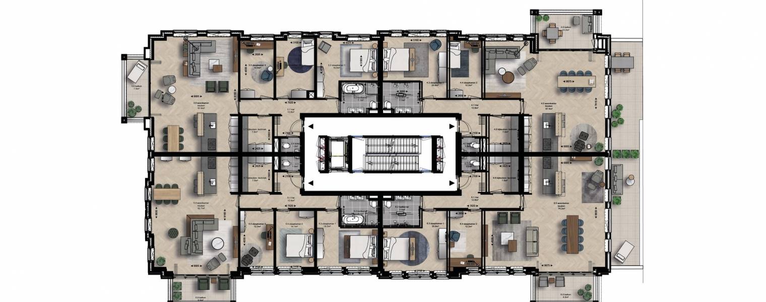De 12 luxe appartementen zijn ruim opgezet en hebben een hoog afwerkingsniveau. Ook biedt van Egmond architecten de mogelijkheid om het appartement in te richten en in te delen naar geheel eigen wensen. Vrijwel iedere wens is te realiseren in de appartementen.
