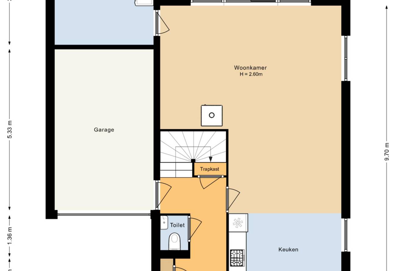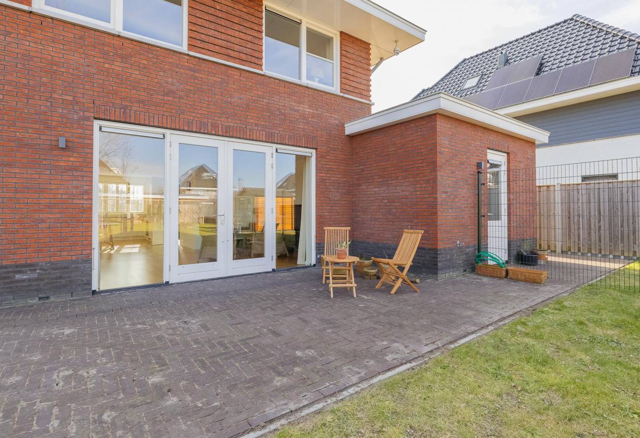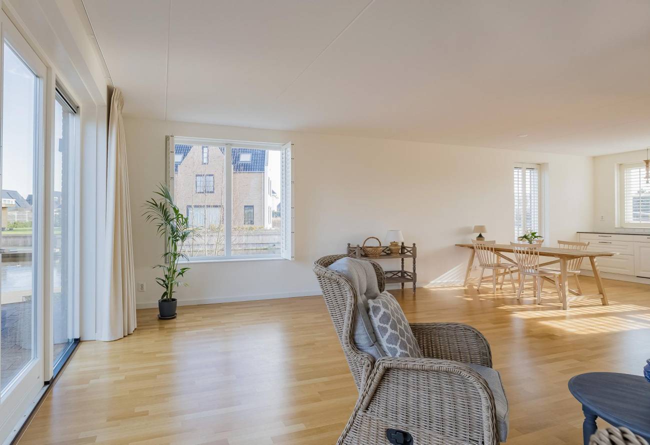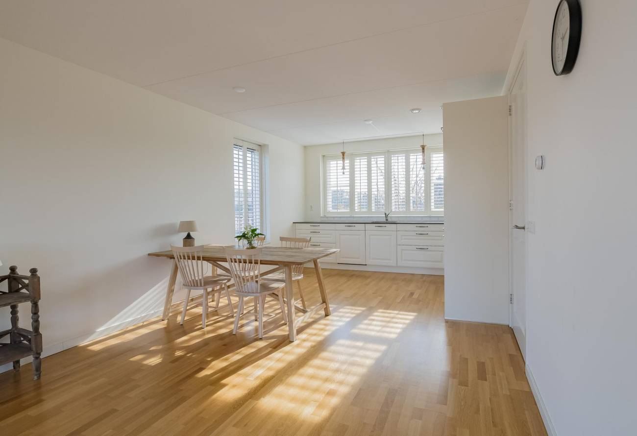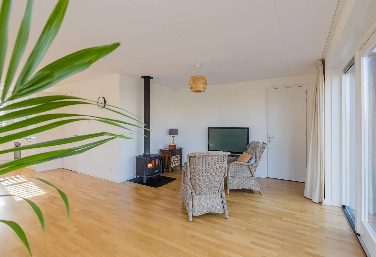 Via de entree stap je binnen in de ruime hal met toilet, meterkast en trap naar boven. De lichte en sfeervolle living heeft een open haard, een open keuken en openslaande deuren naar het terras en de tuin. De moderne keuken in L-opstelling is voorzien van hoogwaardige inbouwapparatuur. De gehele begane grond heeft vloerverwarming voor extra comfort.
