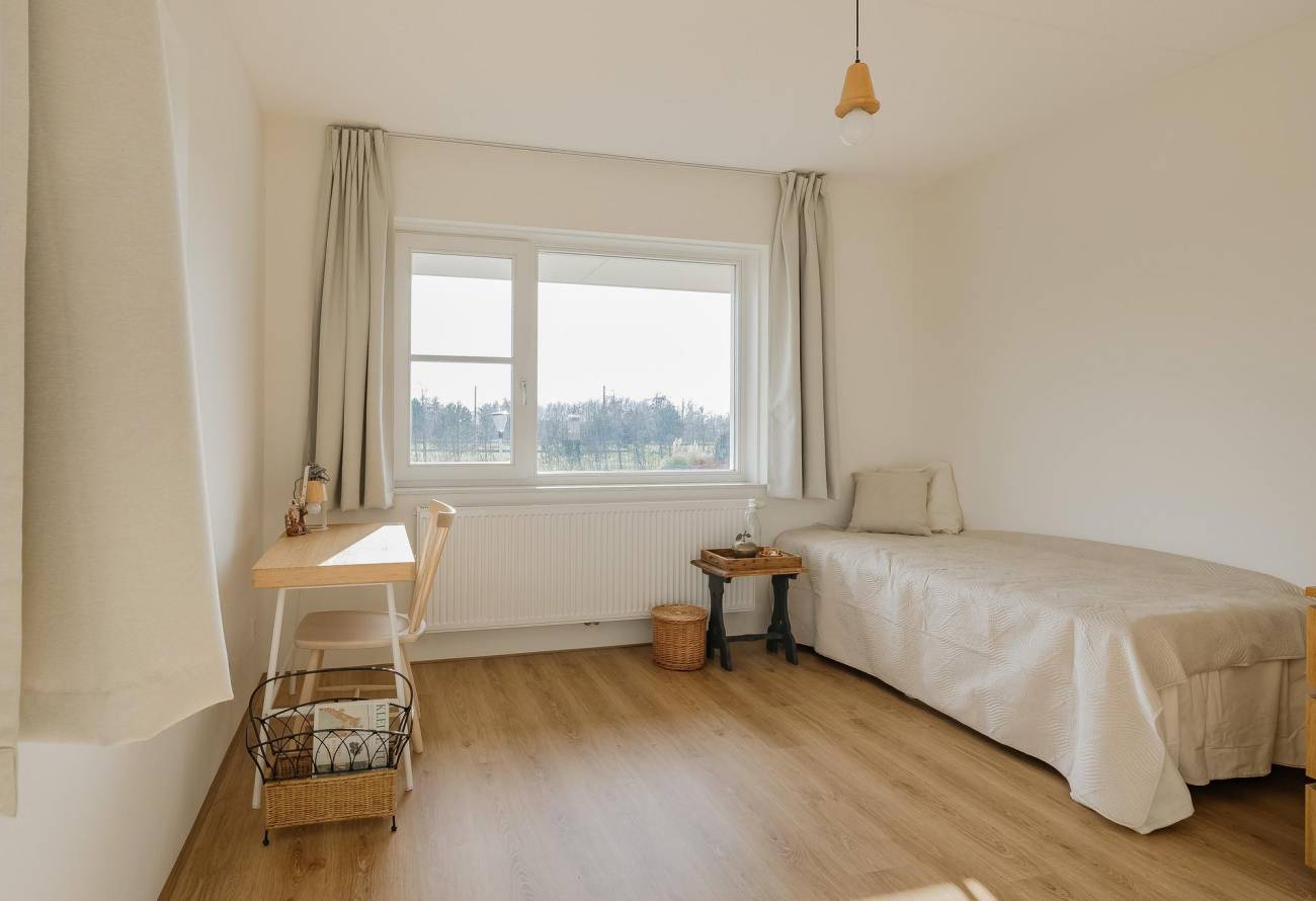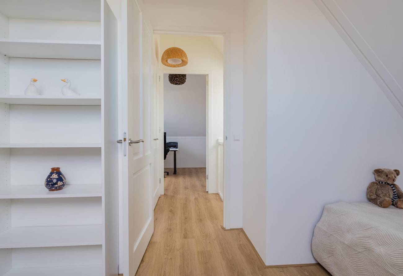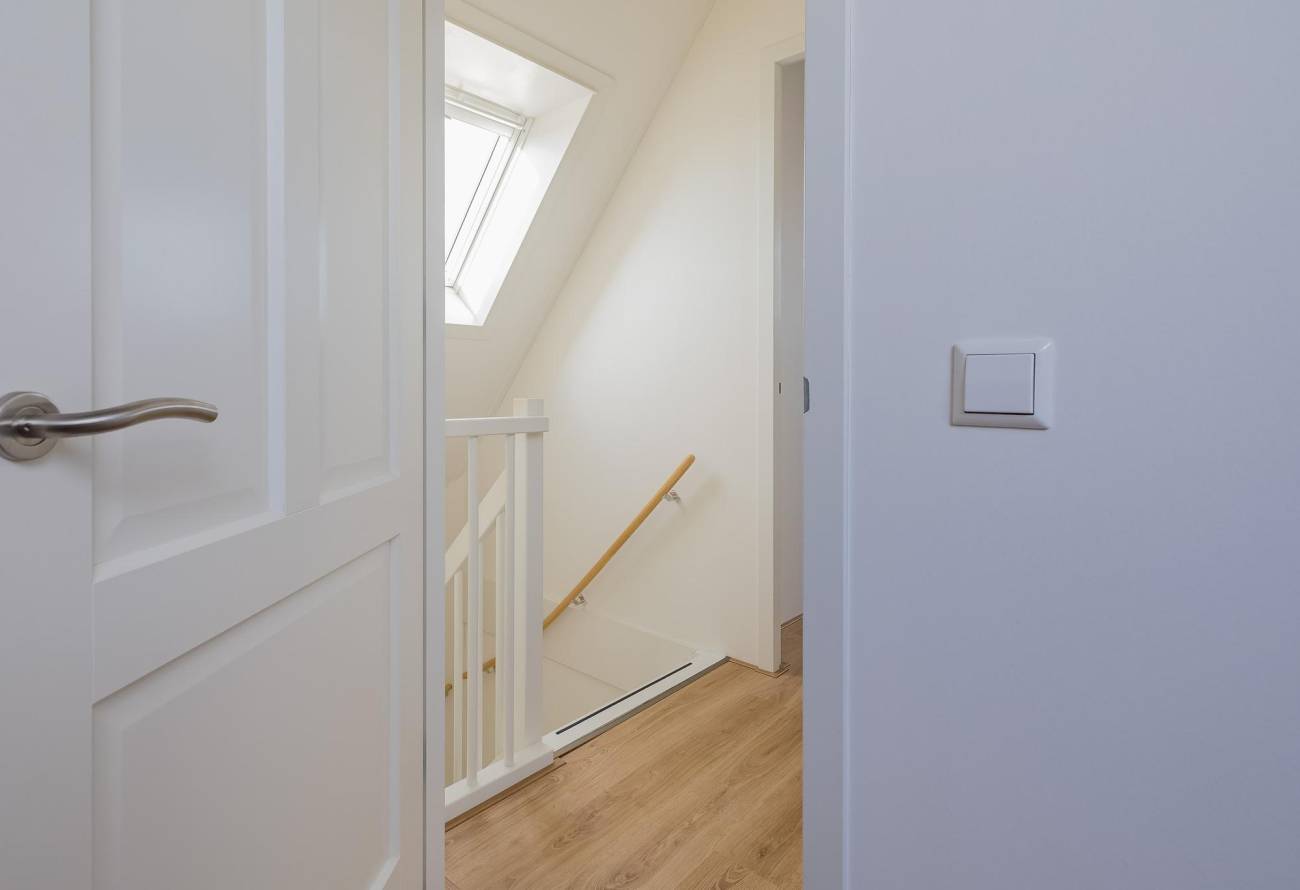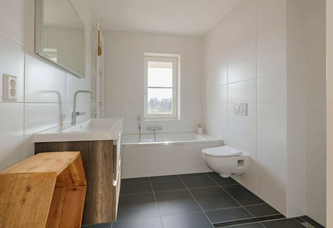 Op de eerste etage vind je twee ruime slaapkamers, waarvan één met een inloopkast. De moderne badkamer is voorzien van vloerverwarming, een ligbad, inloopdouche, toilet en wastafel.