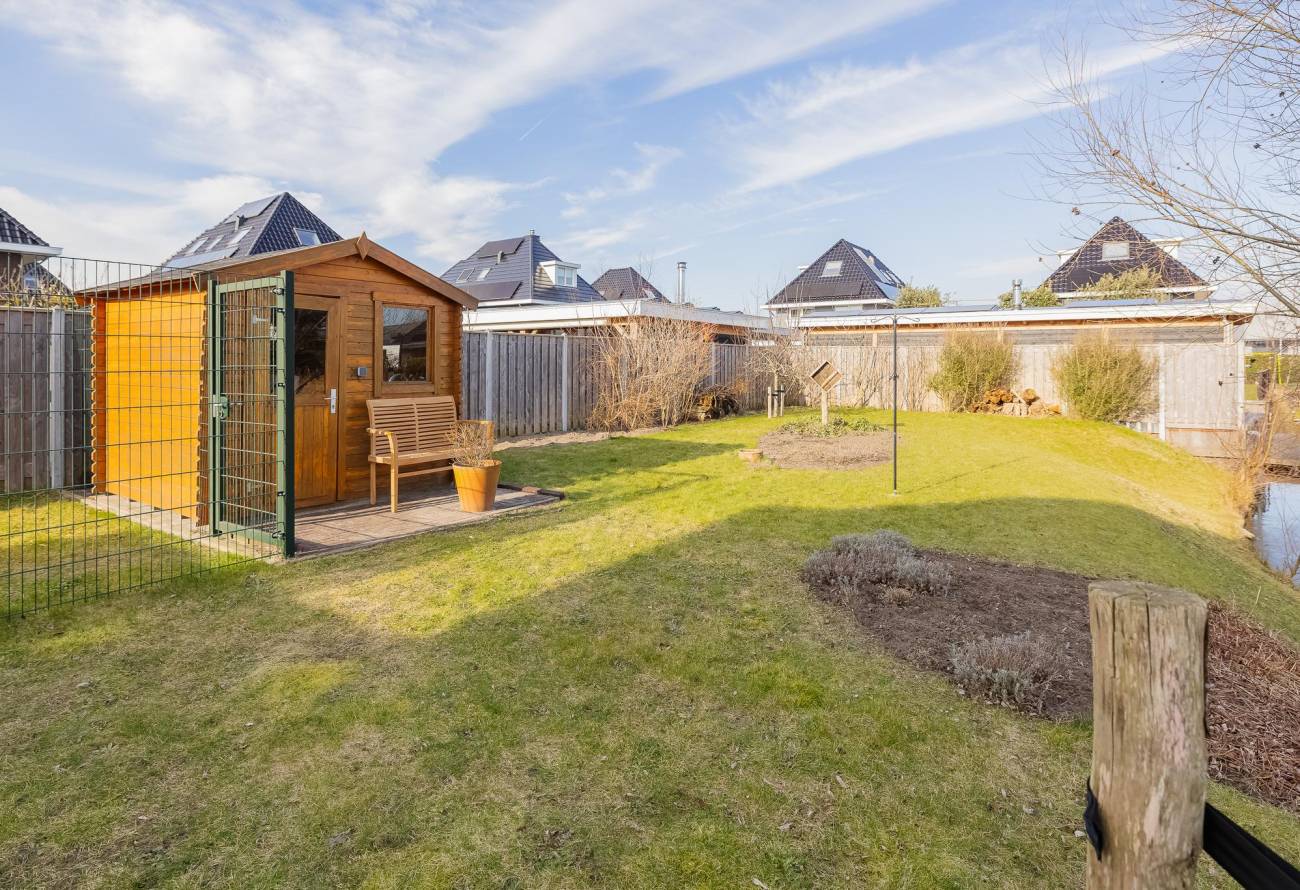 De woning heeft een nette voor, zij en achtertuin met een houten vlondersteiger direct aan het water. Een speels ingerichte tuin met gazon en een afgeschermd gedeelte – perfect voor kleine huisdieren.