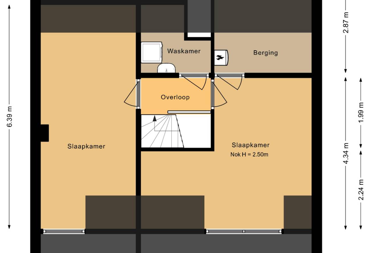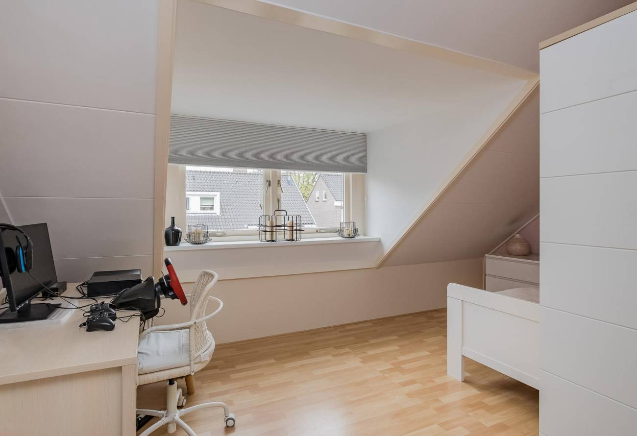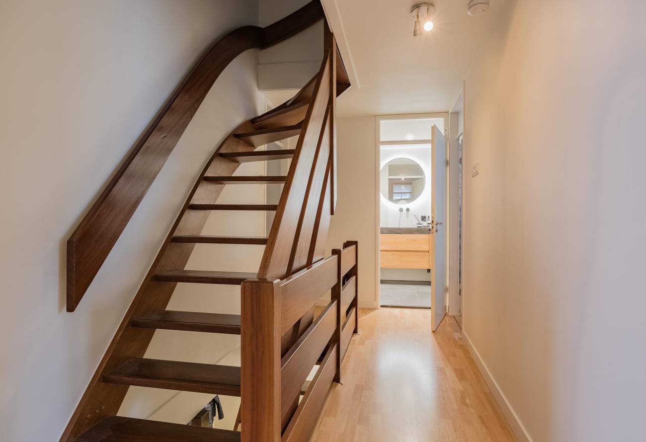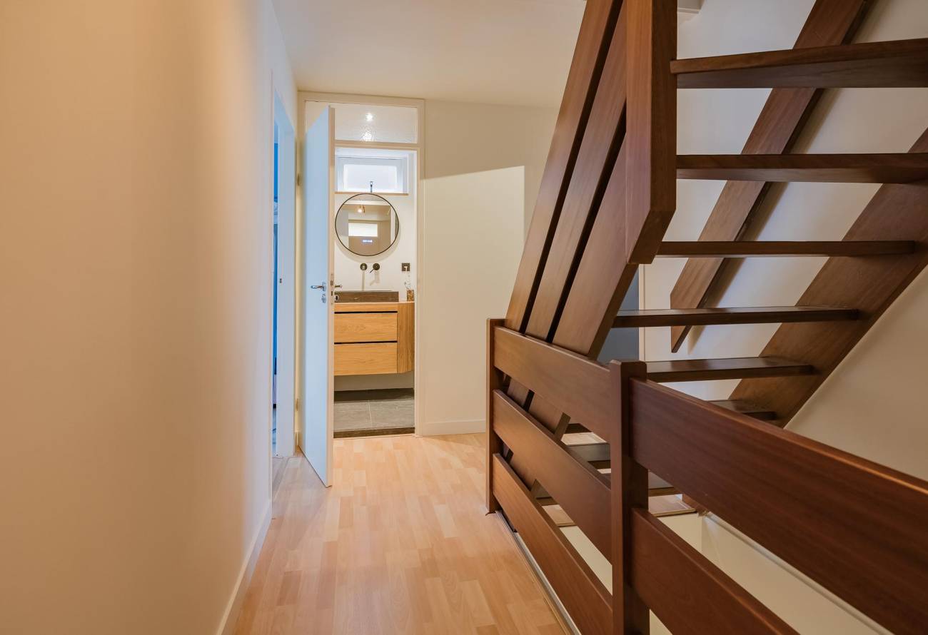 Deze etage biedt nóg twee slaapkamers, waarvan één met een dakkapel, en een handige wasruimte met aansluiting voor wasapparatuur en een aparte cv-ruimte.