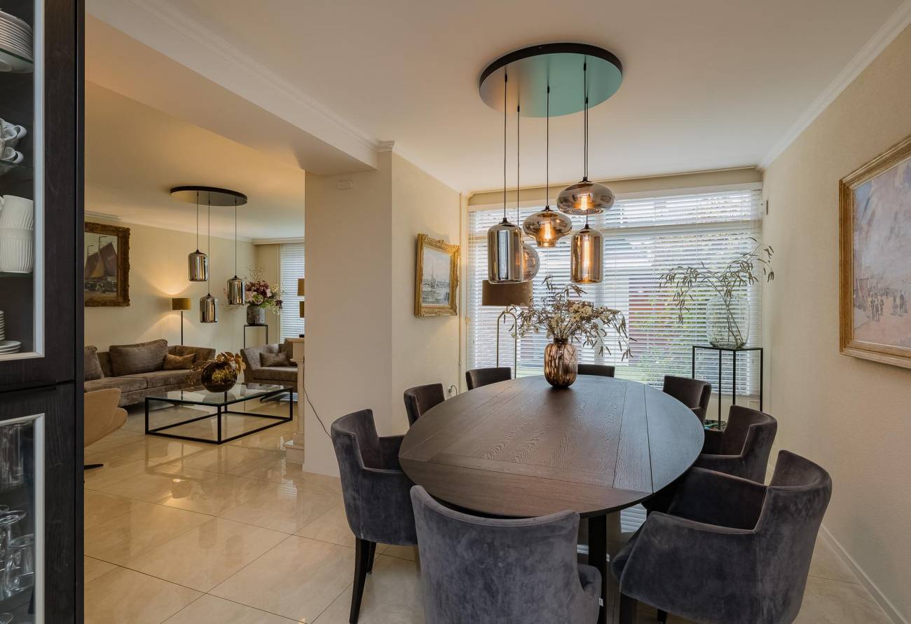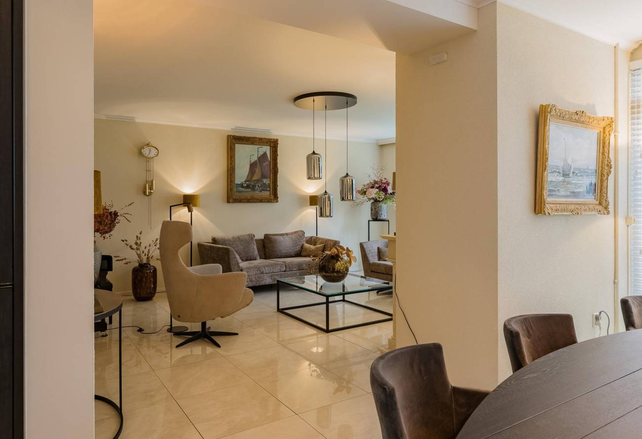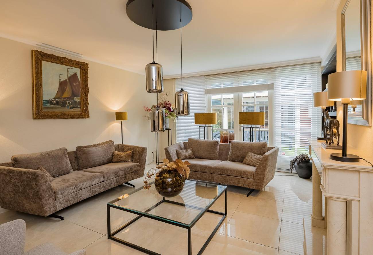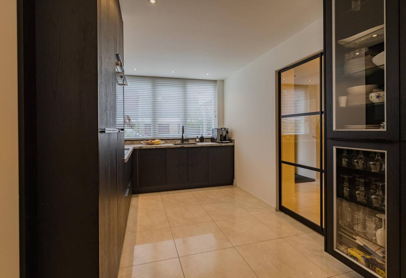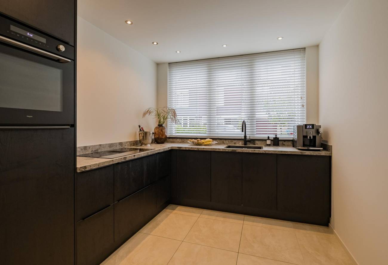 Bij binnenkomst in de stijlvolle entree voel je direct de warmte van deze woning. De begane grond is ruim en is geheel voorzien van een mooie lichte tegelvloer met vloerverwarming. Via een fraaie taatsdeur kom je allereerst in de keuken met eetkamer. Deze moderne, luxe open keuken (2023) in L-opstelling is voorzien van stijlvolle zwarte accenten en alle benodigde inbouwapparatuur. Aangrenzend kom je in de sfeervolle woonkamer waar je geniet van een strakke open haard, perfect voor gezellige avonden en via openslaande deuren loop je zo de zonnige tuin in.
