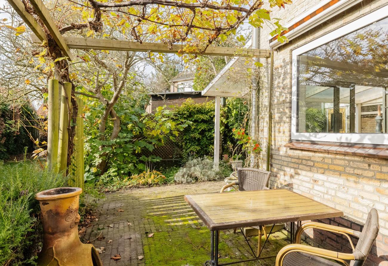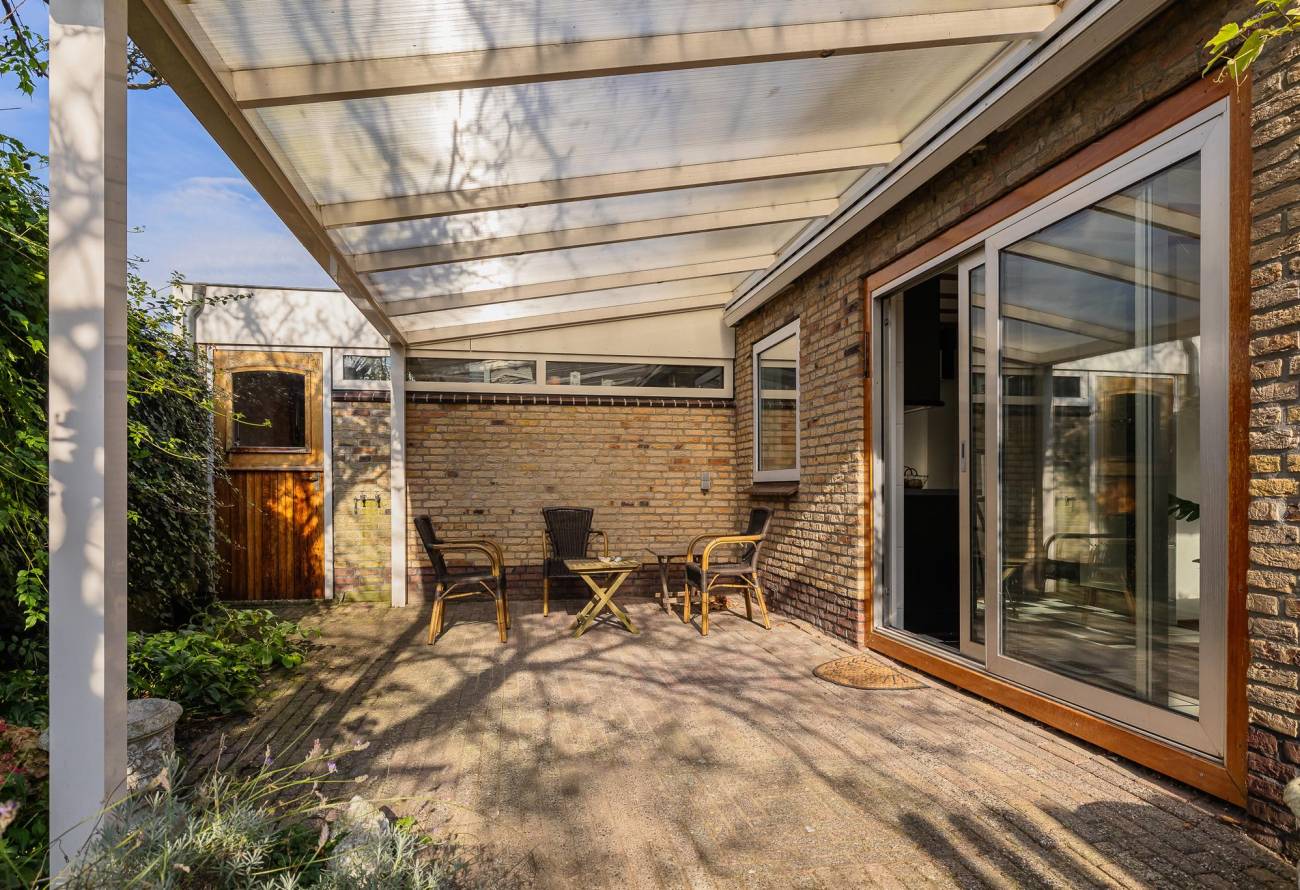 De tuin is gelegen op het zuidwesten en heerlijk zonnig. In de overkapping met zonnescherm aan de woonkamer is het in de avond heerlijk genieten.