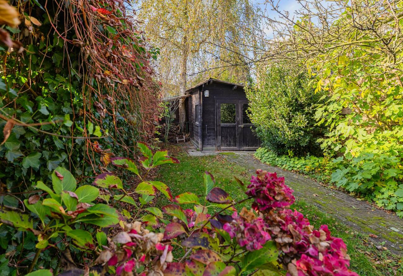 Er zijn twee bergingen. Er is er een in de hoek van de tuin voor de fietsen, motor of bootspullen.