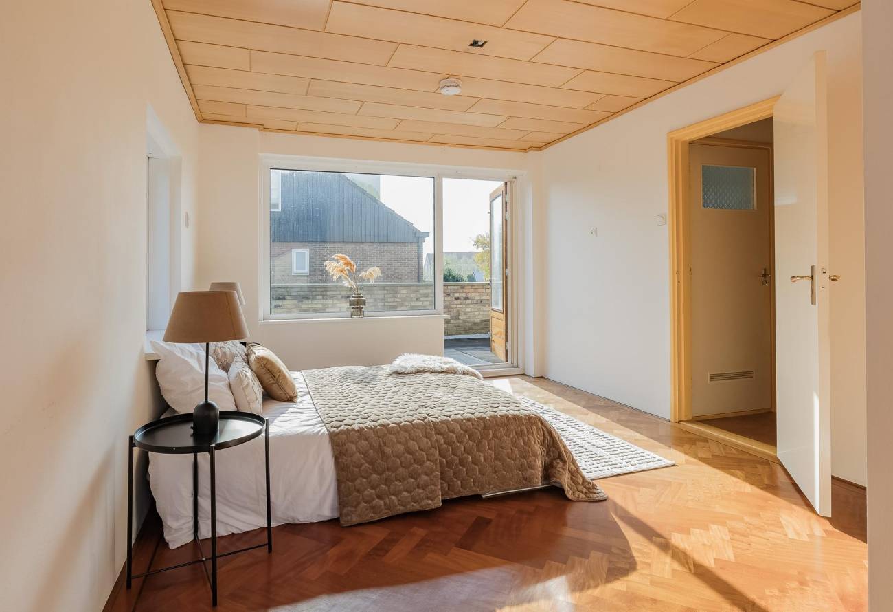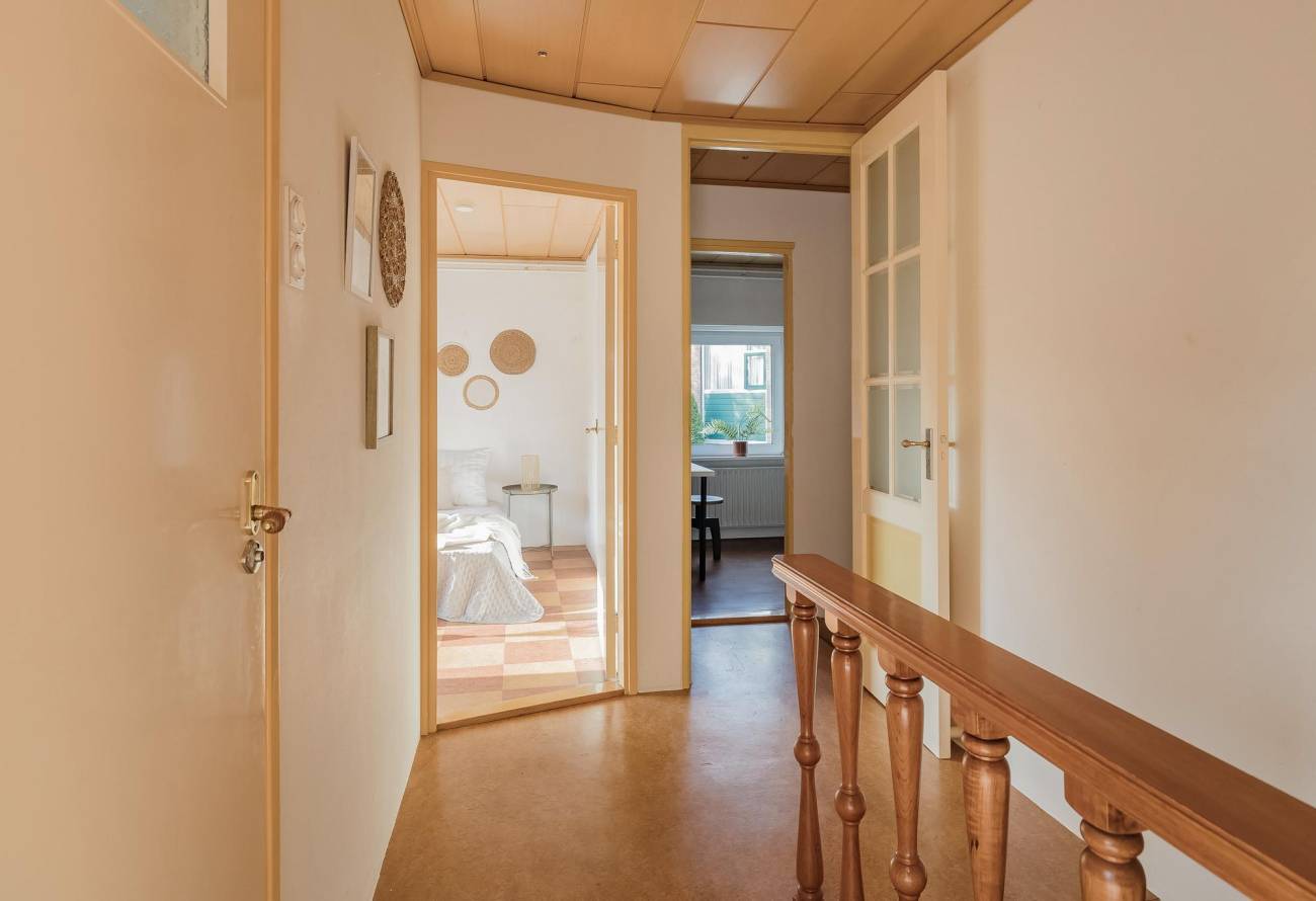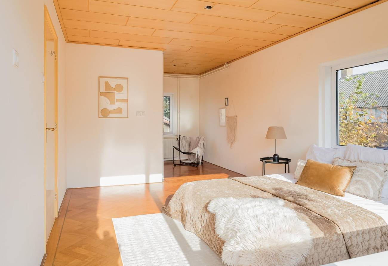 De 2e en 3e slaapkamer zijn beide prima van formaat. De mogelijk 4e slaapkamer is thans ingericht als inloopkast met trap naar de 2e etage.