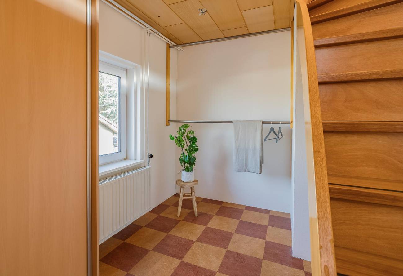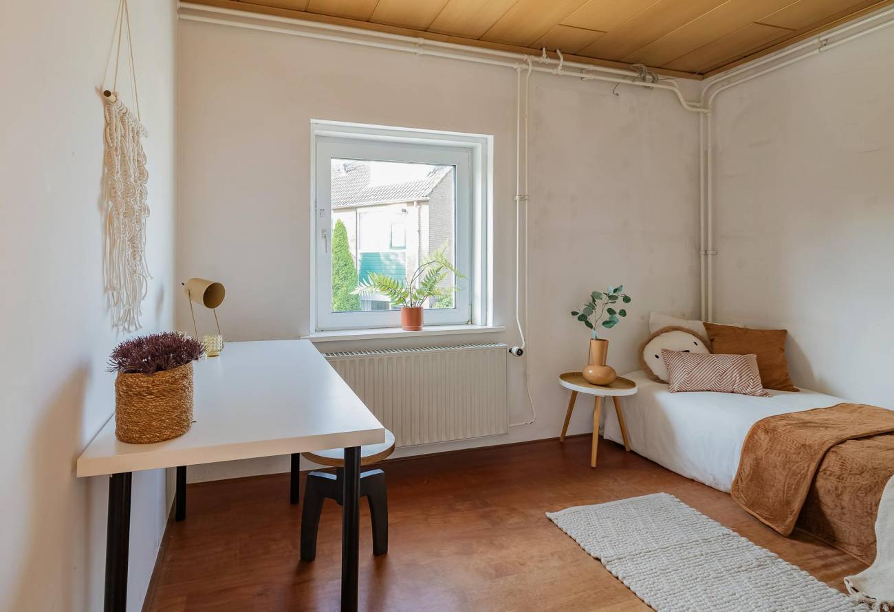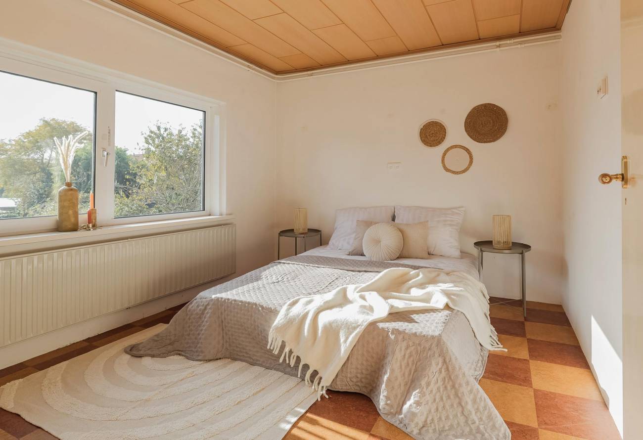 De 2e en 3e slaapkamer zijn beide prima van formaat. De mogelijk 4e slaapkamer is thans ingericht als inloopkast met trap naar de 2e etage.