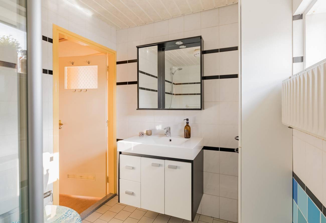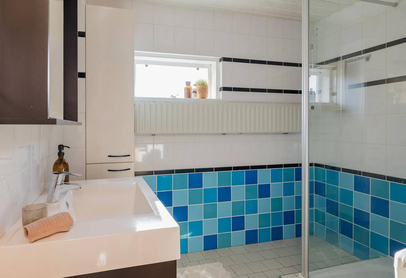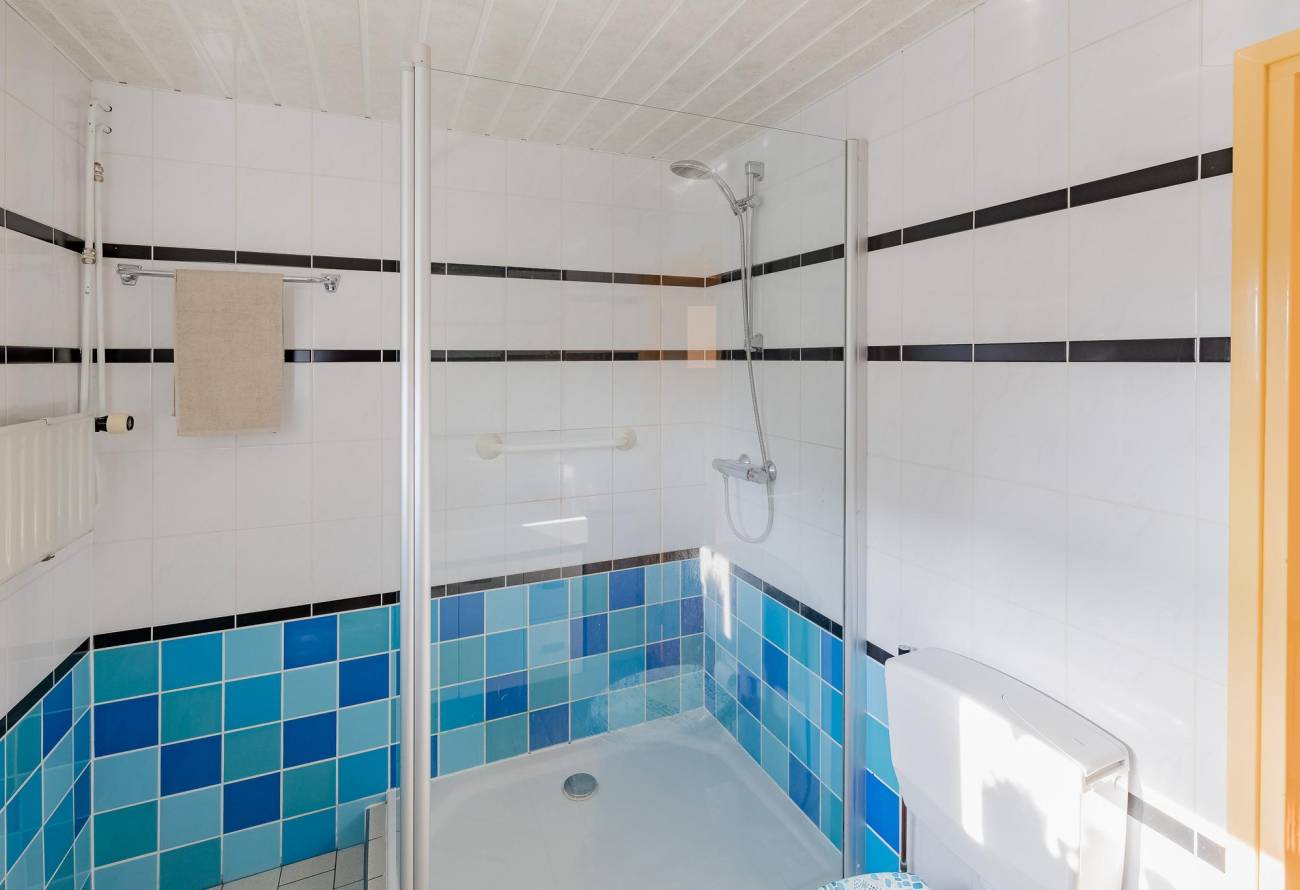 Vanuit de overloop is er toegang tot de 2e badkamer met toilet, wastafel en doucheruimte.