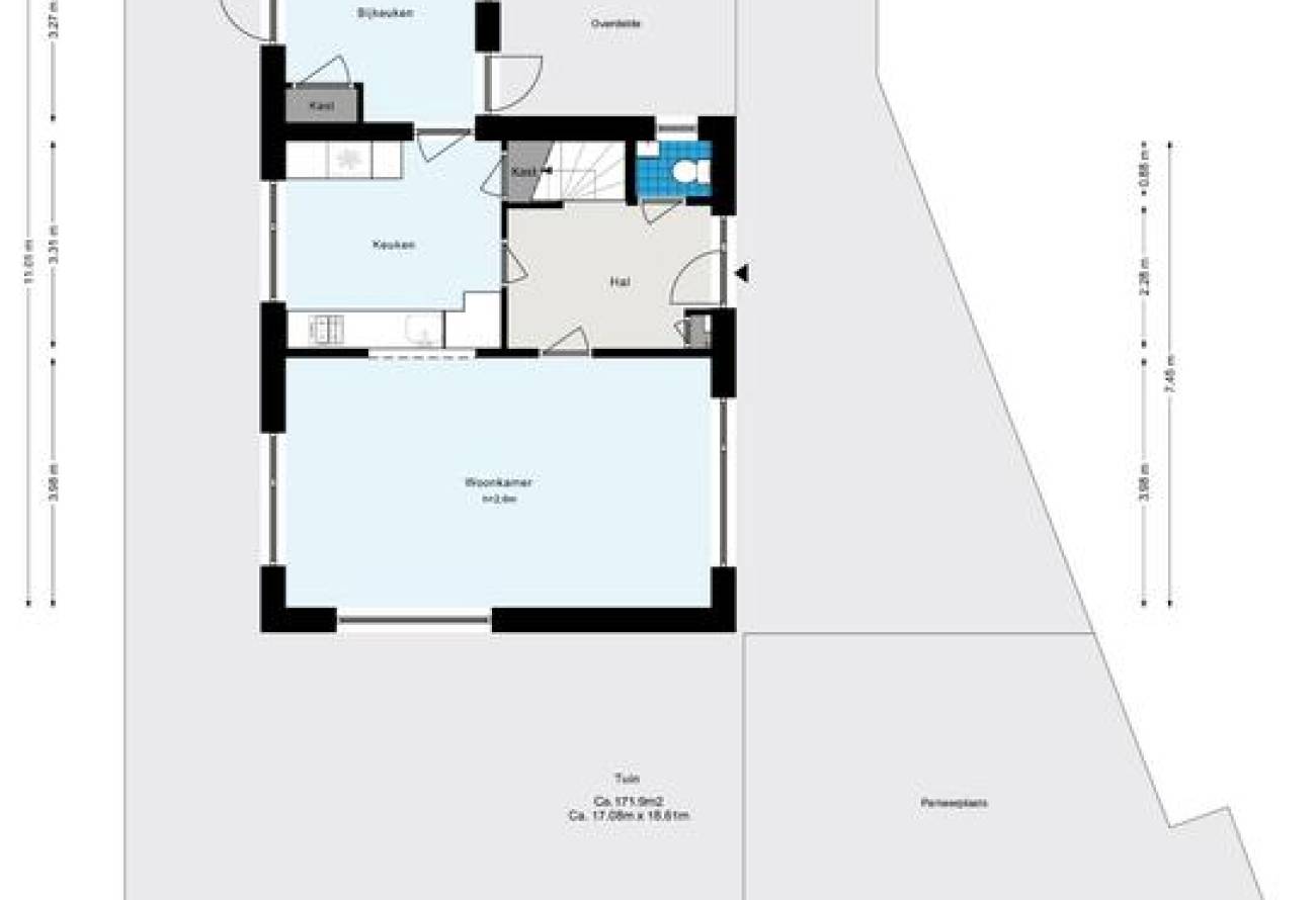 In de bijkeuken zijn de aansluitingen voor het wassen en drogen, daarnaast kan deze ruimte ook fungeren als berging voor de fietsen.