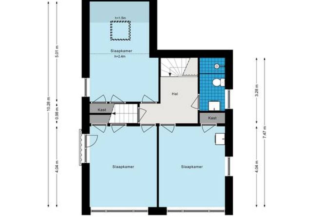 Vanuit de entreehal een vaste trap naar de overloop. De ruime slaapkamers aan de voorzijde zijn bijna identiek aan elkaar, waarvan de ene kamer beschikt over een wastafel met meubel en de andere over een frans balkon.