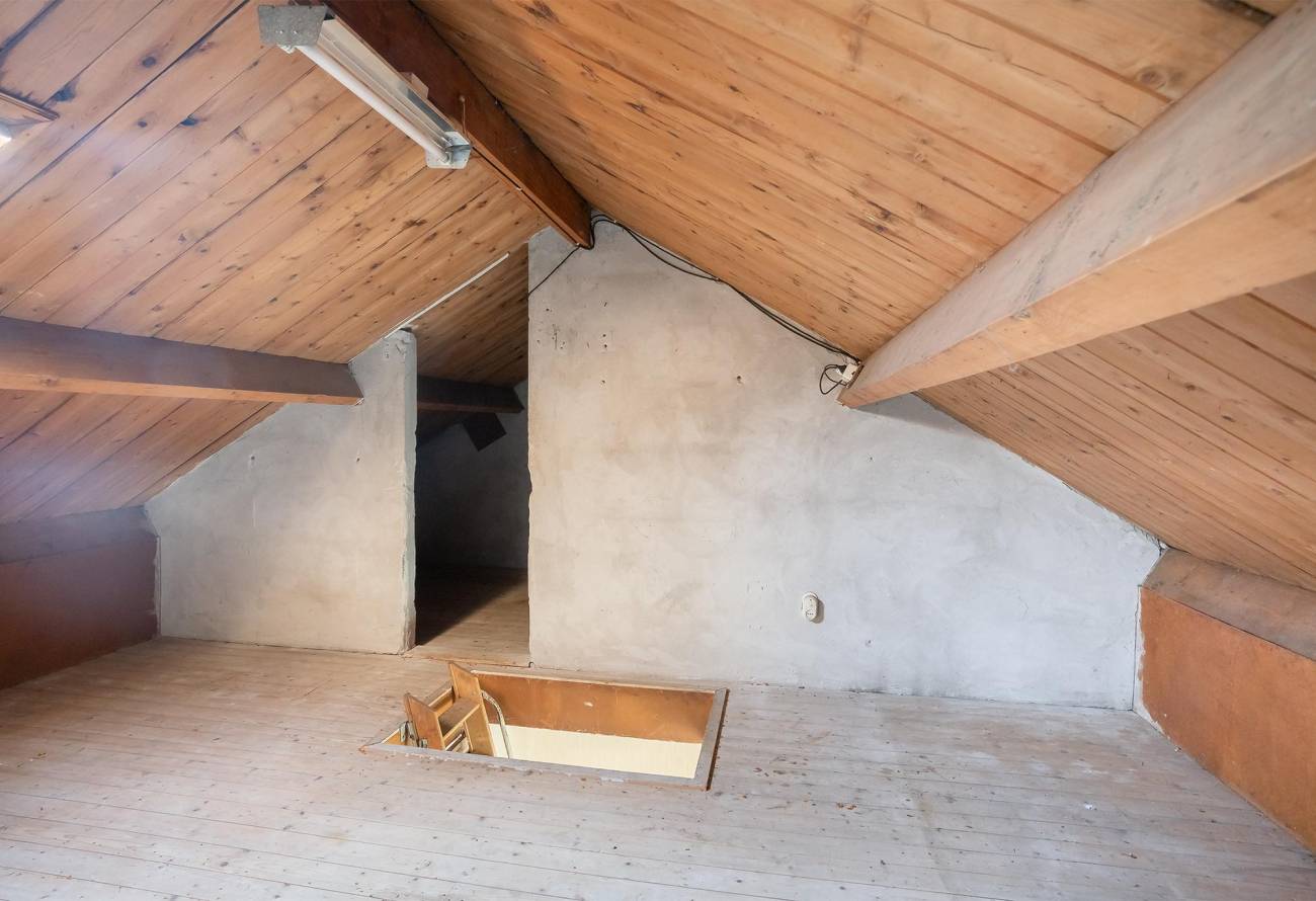 Vlizotrap naar zolderverdieping (inpandig 13m²) met dakraam en kan na renovatie ideaal fungeren als 5e slaapkamer.
