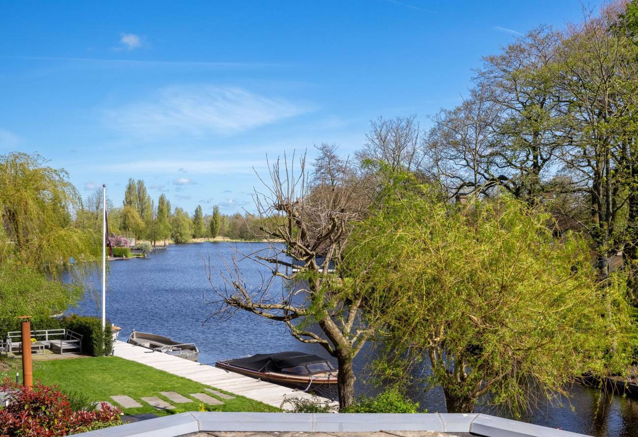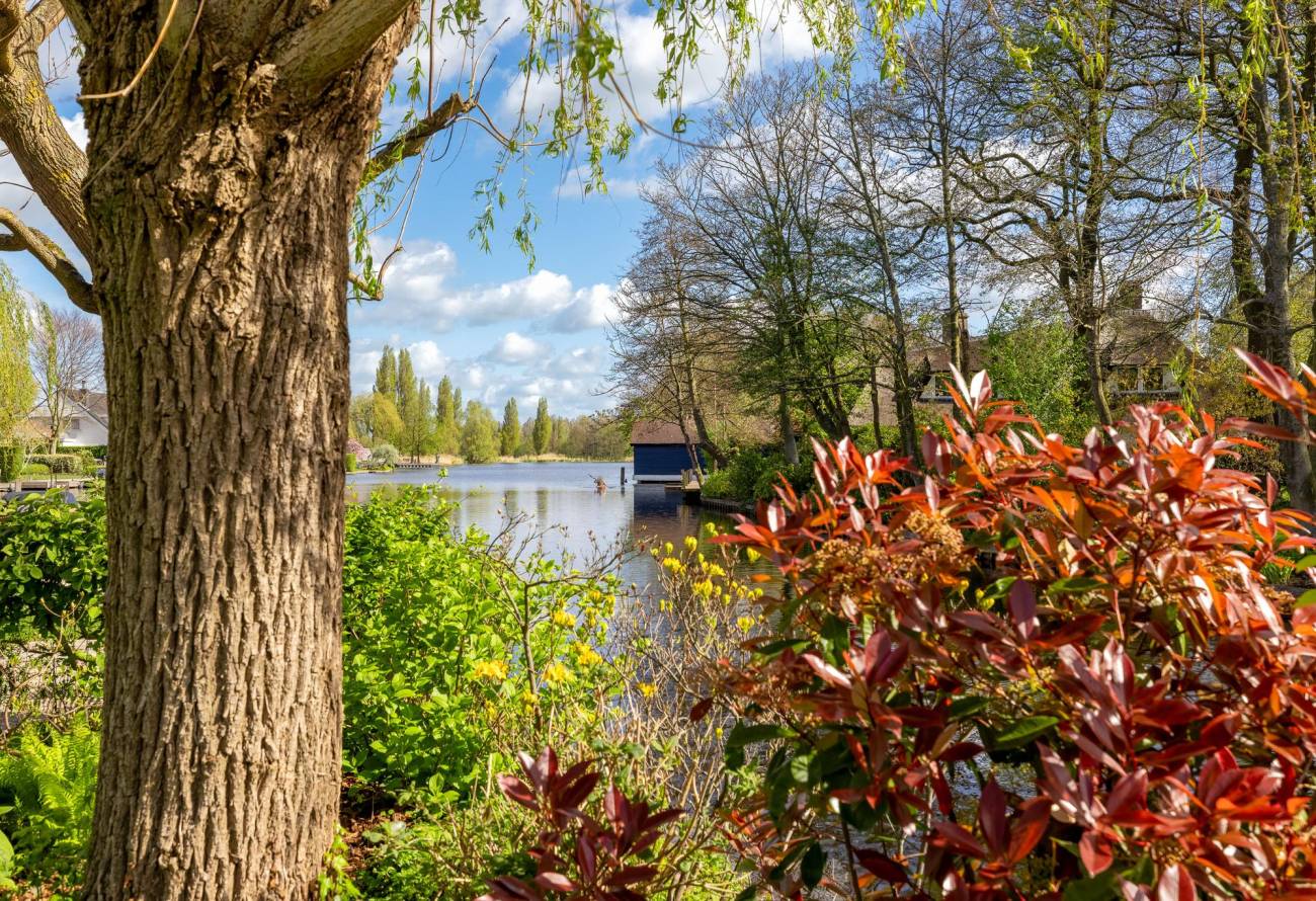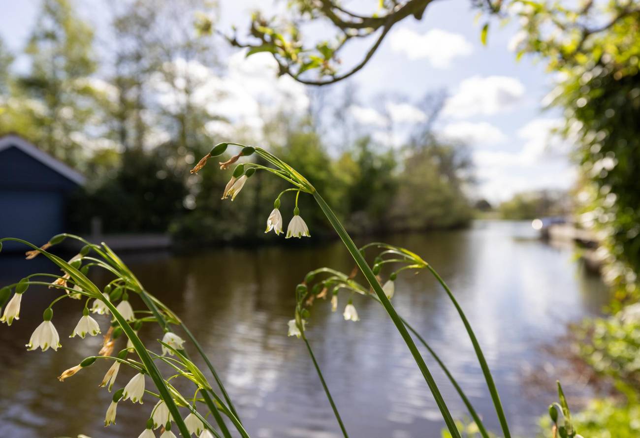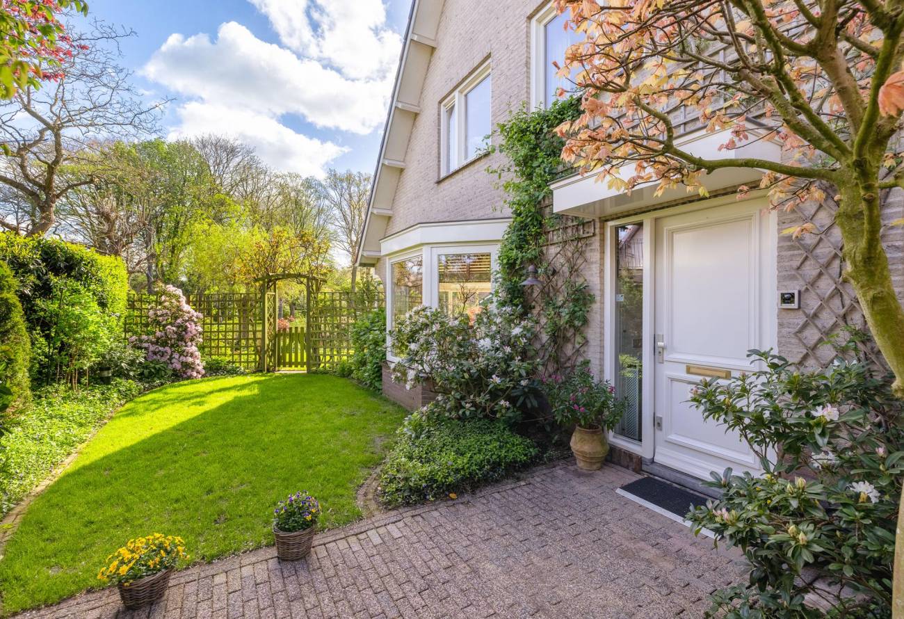 De zonnige tuin (W) heeft twee ruime terrassen, bereikbaar vanuit de serre, de eetkamer en de werkkamer. Met een eigen insteekhaven met zwemtrap is er vanaf de eigen tuin toegang tot allerlei vormen van watersport. Zo zit je direct aan het Poelmeer en vaar je in enkele minuten, via Warmond, naar de Kagerplassen met recreatiegebied ‘Koudenhoorn’ of verder naar de gezellige grachten van Leiden.