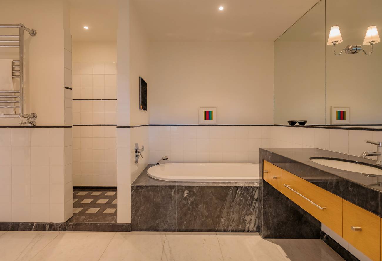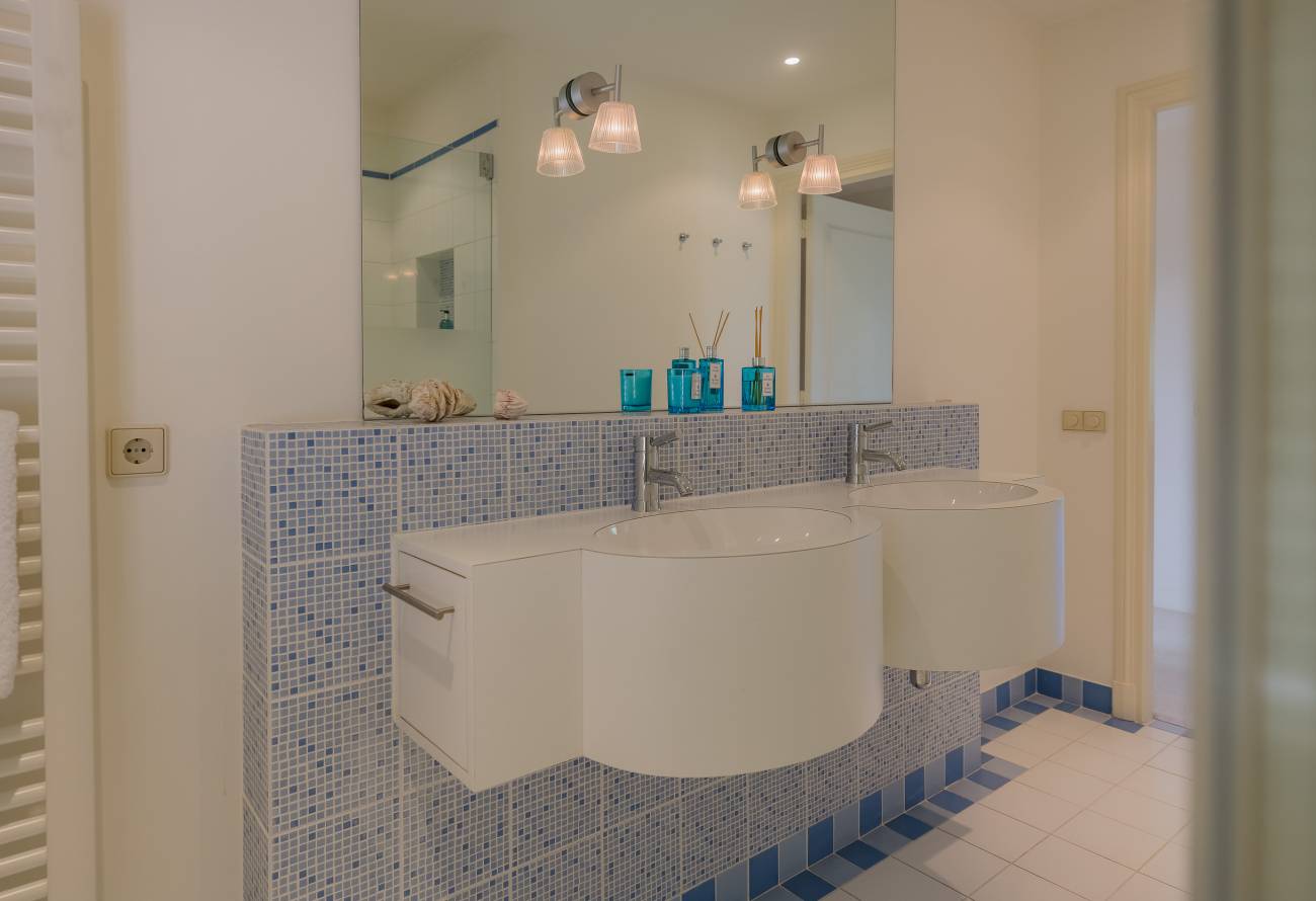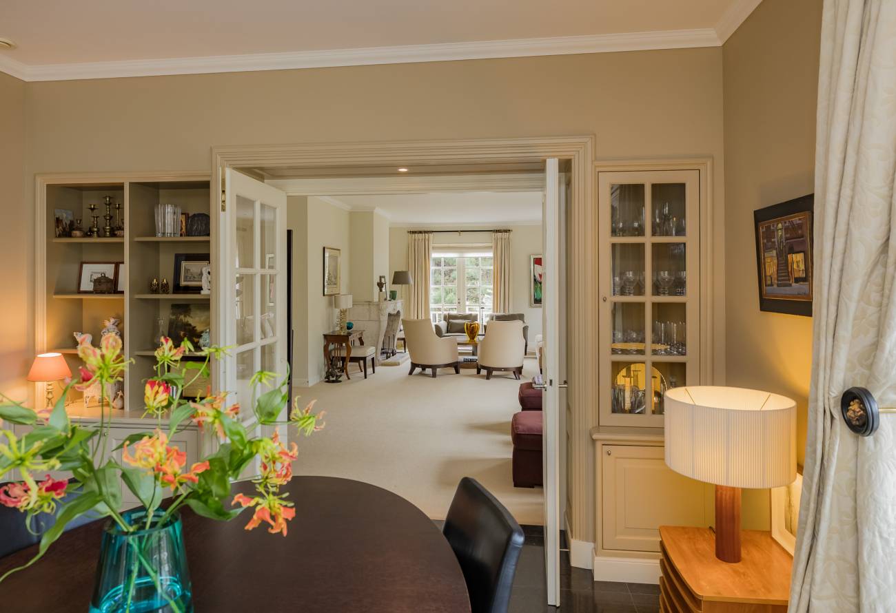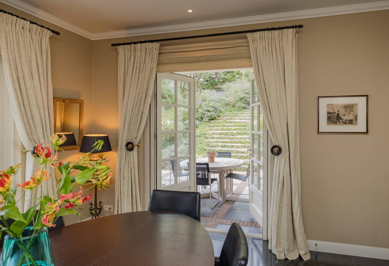 De villa straalt rust, ruimte en elegantie uit. Een elegante opgang, rijkelijk omgeven door bloemen, verwelkomt u bij de entree. Via de royale hal bereikt u de sfeervolle woonkamer met open haard, aangrenzend de eetkamer en de heerlijke leefkeuken met openslaande deuren naar de tuin. Een plek die uitnodigt tot lange avonden koken, tafelen en genieten. Een praktische bijkeuken en een ruime study op de begane grond maken het geheel compleet. Alle vertrekken hebben direct toegang tot de tuin, veranda of één van de balkons.