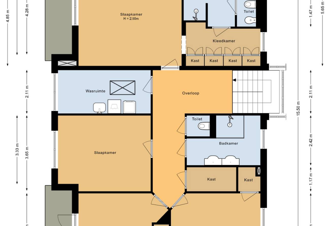 | Badkamers | 2 badkamers, 1 aparte toiletten |