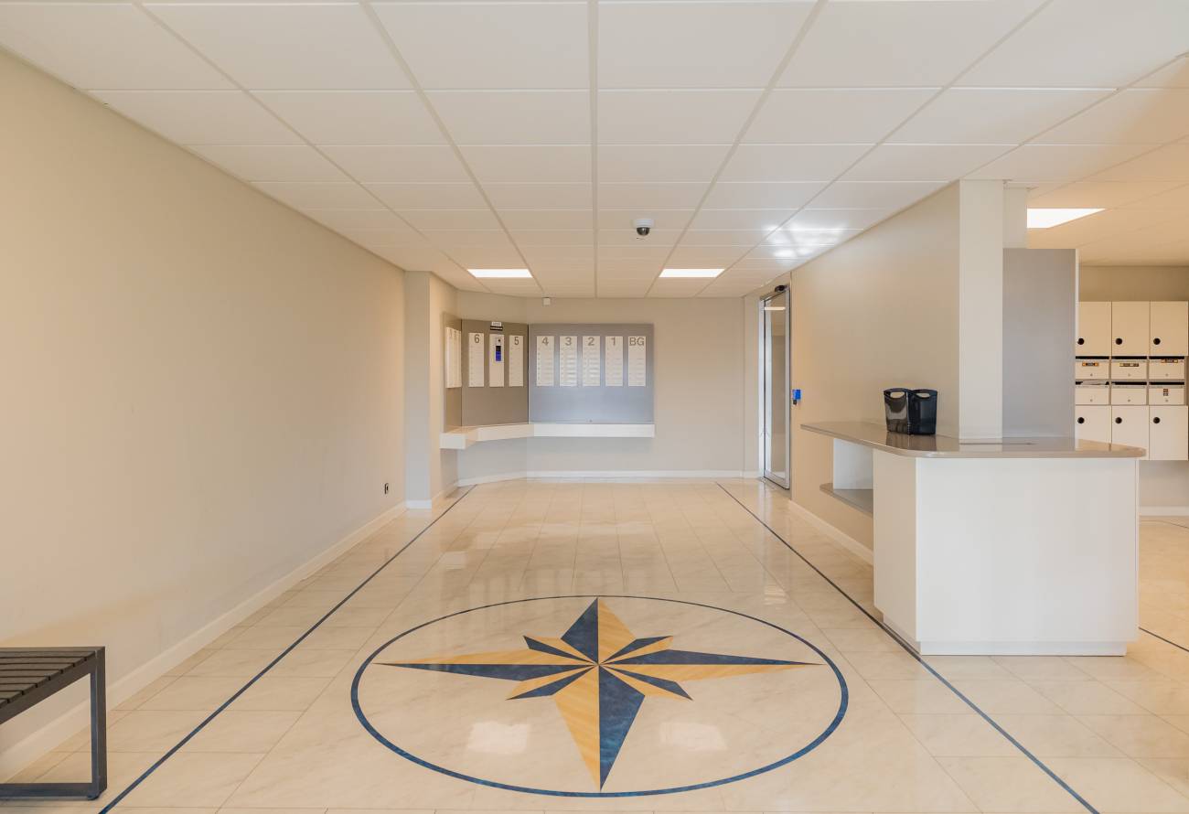 Appartementencomplex Duinroos heeft een eigen entree en een centrale hal met trappenhuis en liften.
