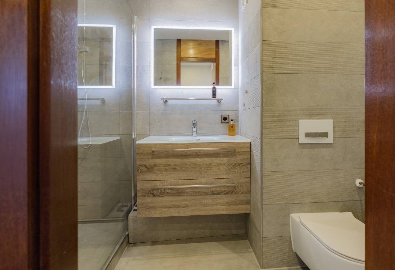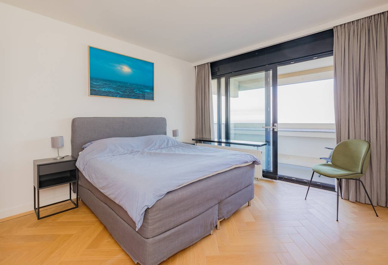 De ruime slaapkamer heeft een inbouwkast en er is veel lichtinval door de grote schuifpui. Vanuit zowel de woonkamer als de slaapkamer is er toegang tot het balkon (westen), welke zich over de gehele breedte van het appartement uitstrekt. De badkamer heeft een inloopdouche, een wastafelmeubel en een toilet.