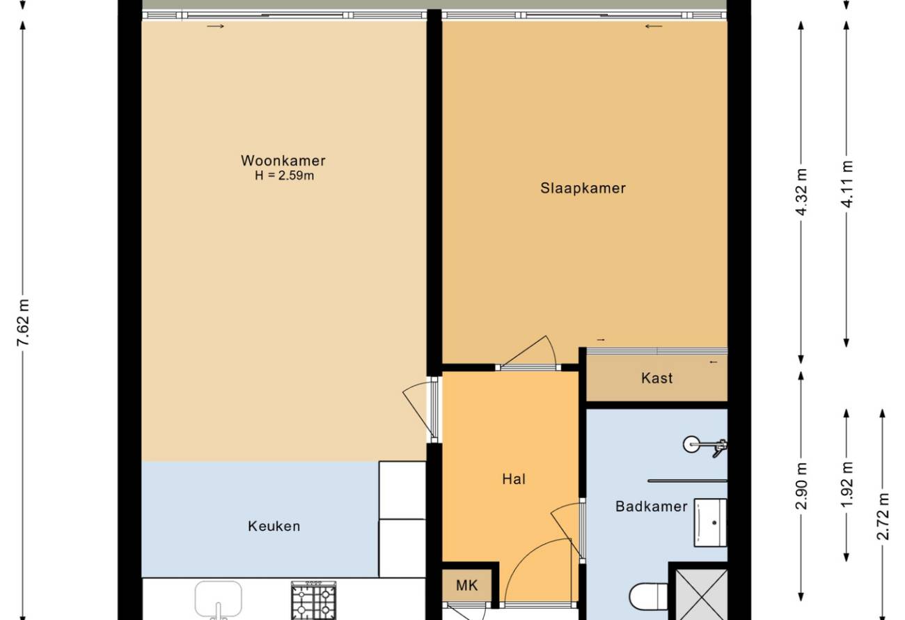 Bouwjaar 1980, woonoppervlakte 55m2, balkon 11m2, inhoud 177m3