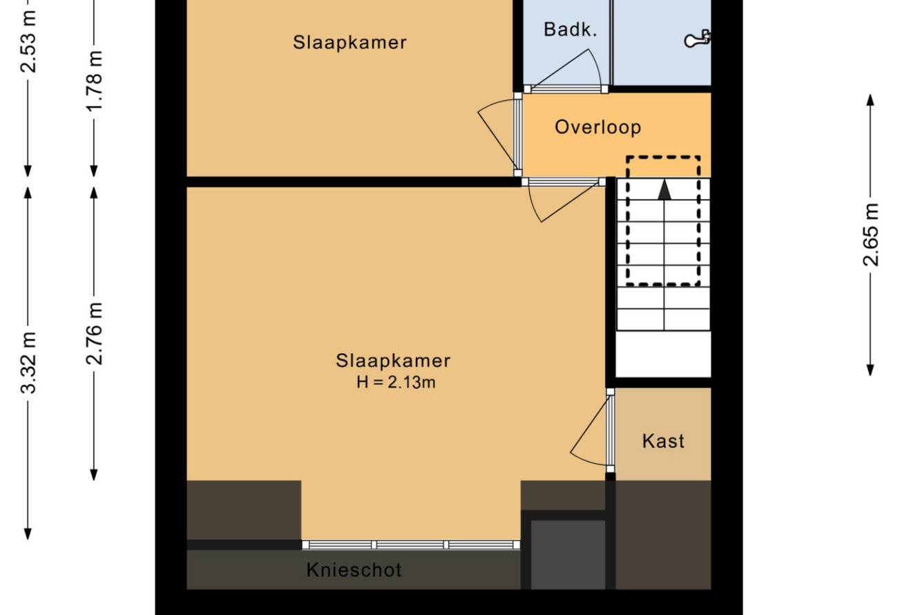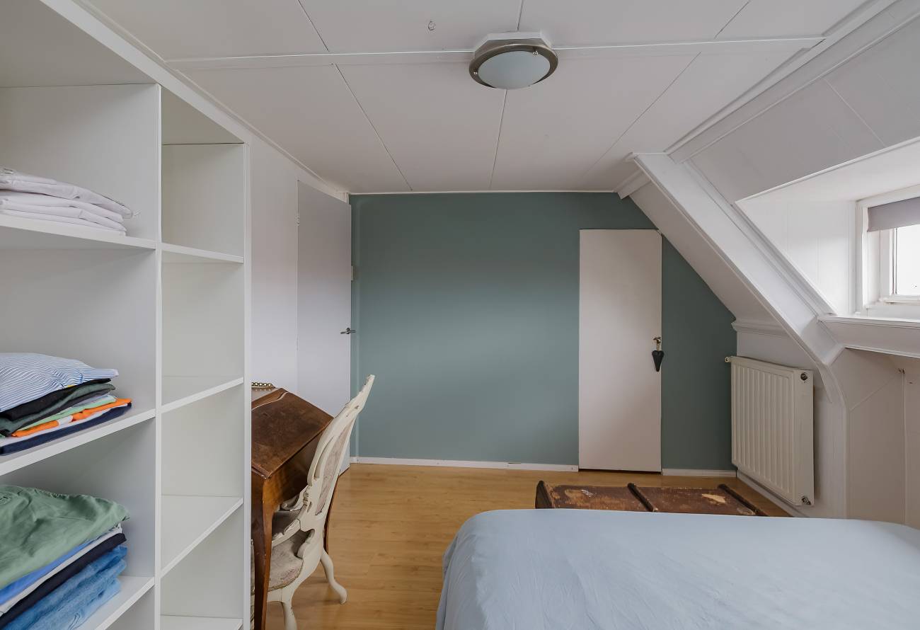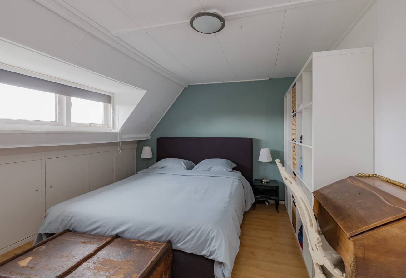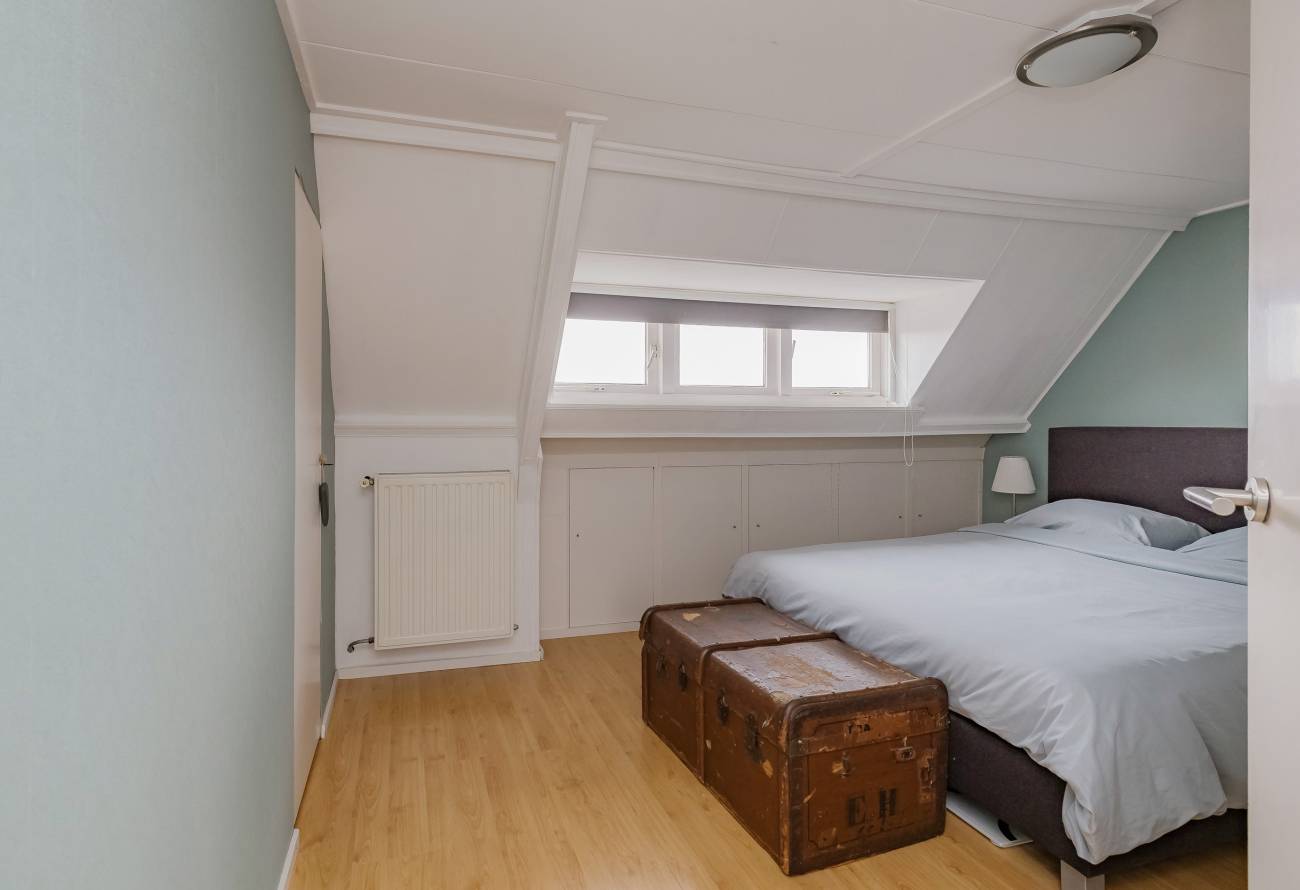 Vanuit de overloop is er toegang tot twee slaapkamers met extra bergruimte achter de knieschotten en kastruimte. Dankzij de dakkapellen aan beide zijden zijn de kamers licht en extra ruim.
