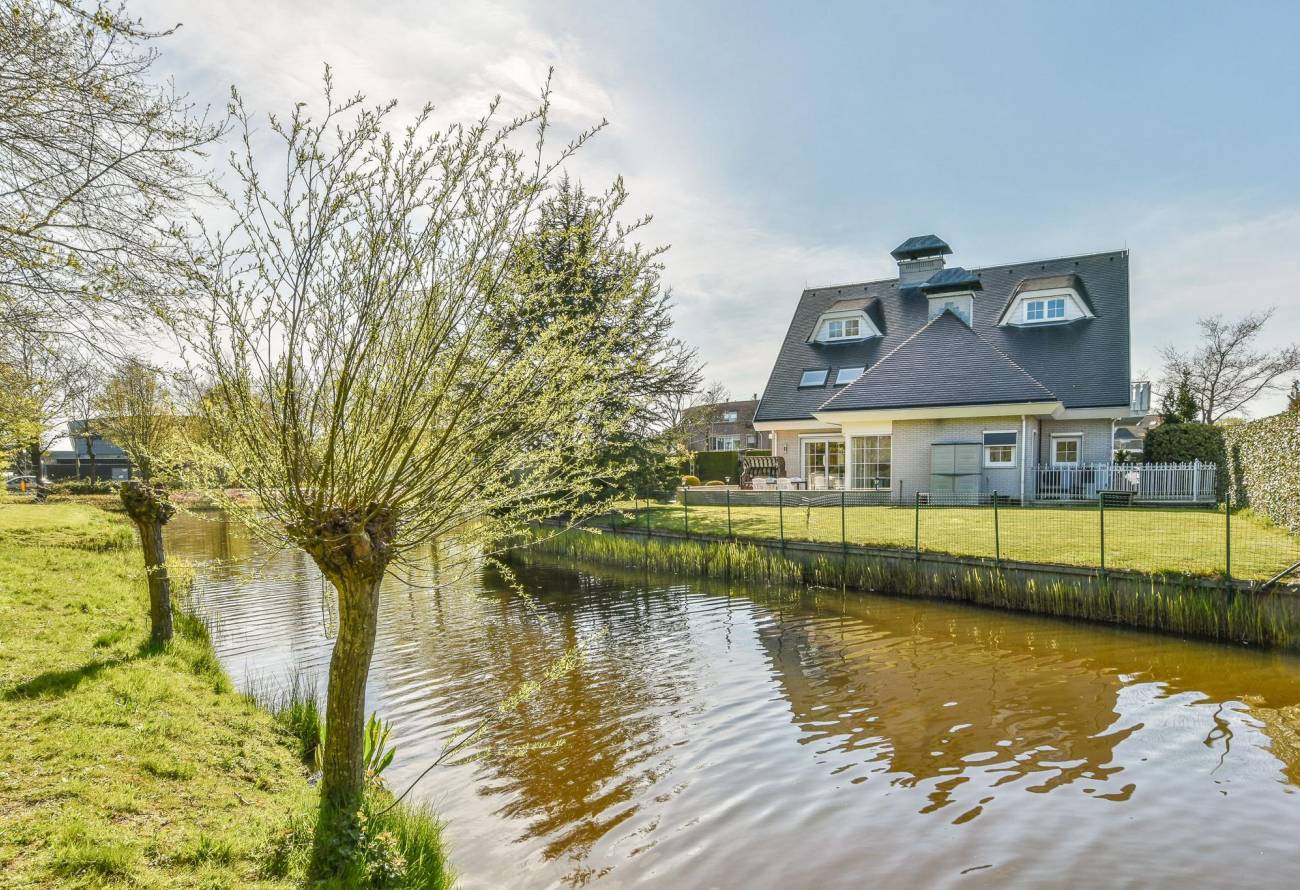 Royale vrijstaande villa met inpandige garage en zonnige tuin rondom. De woning is volledig onderkelderd, is gelegen aan het water met een eigen visplek en heeft uitzicht op een park.