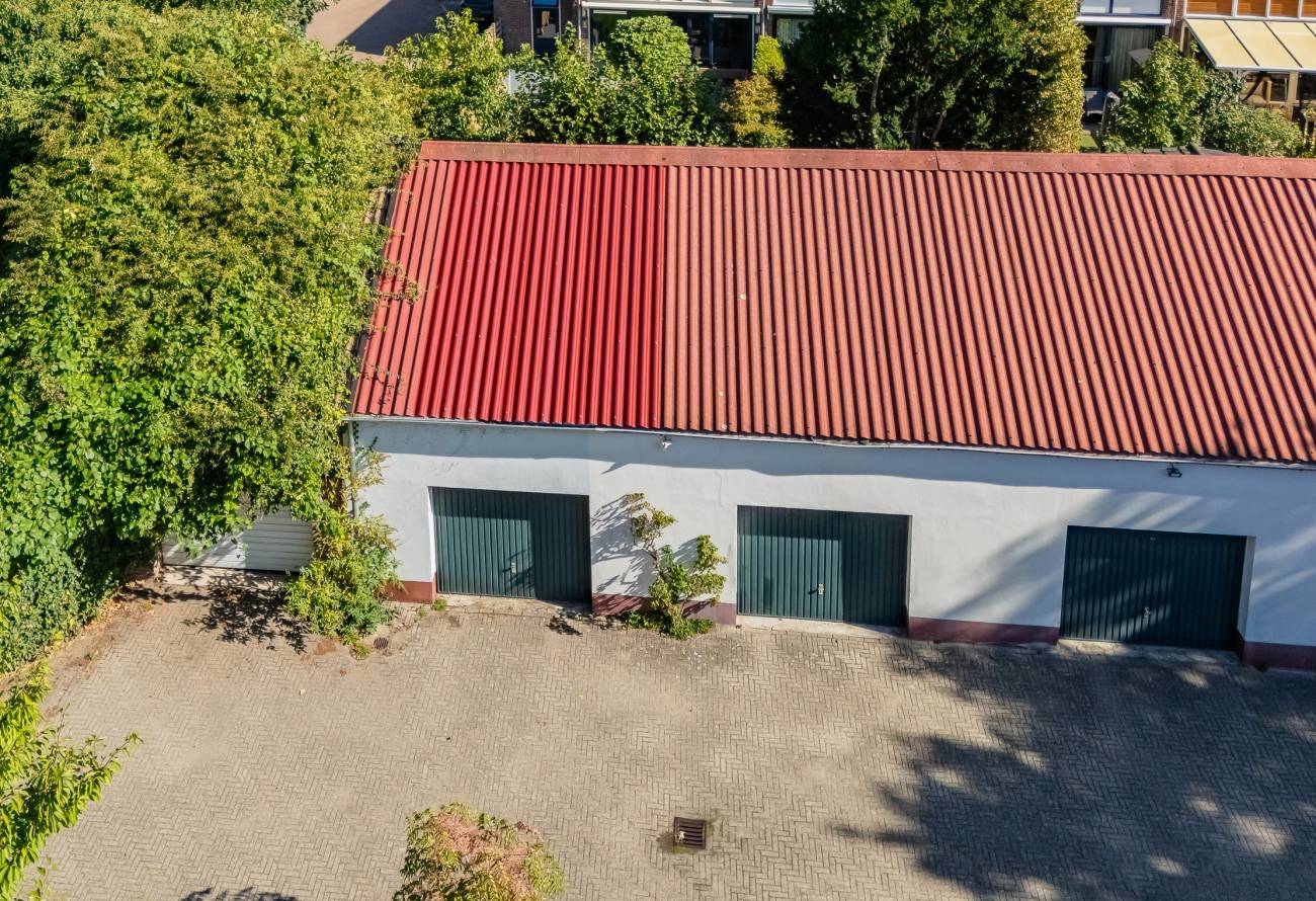 En dan de verrassing: een zeer ruime, vrijstaande garage met een verdieping. Het dak is vernieuwd en voorzien van isolatie. Zowel elektra, water als internet is aanwezig, maar ook voorzien van krachtstroom (380v).