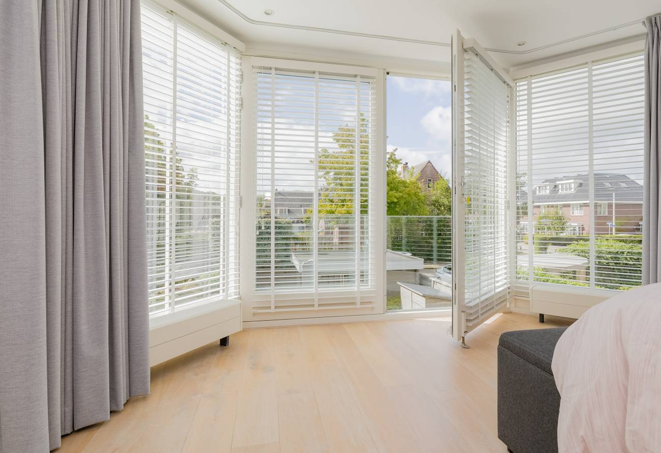 De eerste verdieping biedt een grote slaapkamer aan de voorzijde met erker en Frans balkon en twee fijne slaapkamers aan de achterzijde. De moderne badkamer beschikt over een ligbad, aparte inloopdouche en wastafelmeubel. Ook is er een apart toilet op deze etage.