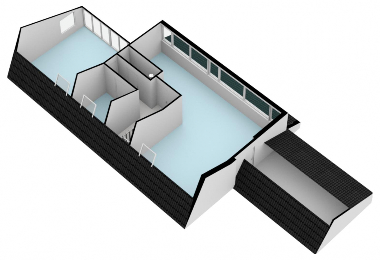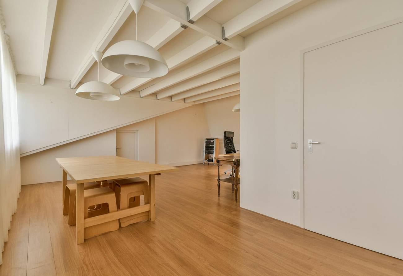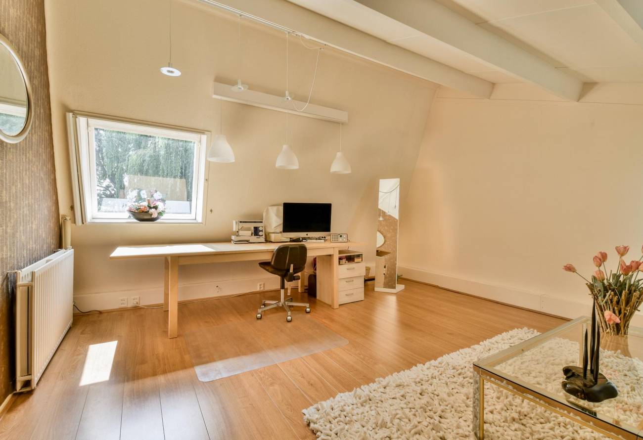 Door het dakkapel is de achterkamer bijzonder groot en is ook geschikt als werkruimte. De andere kamer heeft een doorkijk in de vide van de woonkamer.