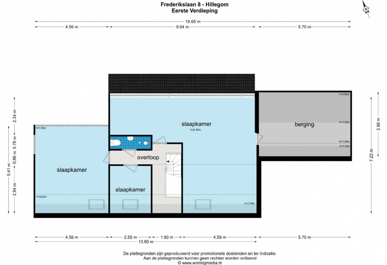 Er is een zeer grote berging aanwezig op deze etage. De 3e badkamer is v.v. een toilet, wastafel en douche.
