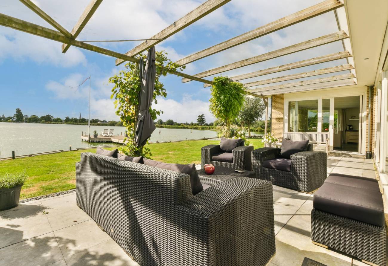 Bijzondere locatie met vrijstaande villa en garage direct gelegen aan de Langeraarse Plassen met een spectaculair uitzicht over het water.