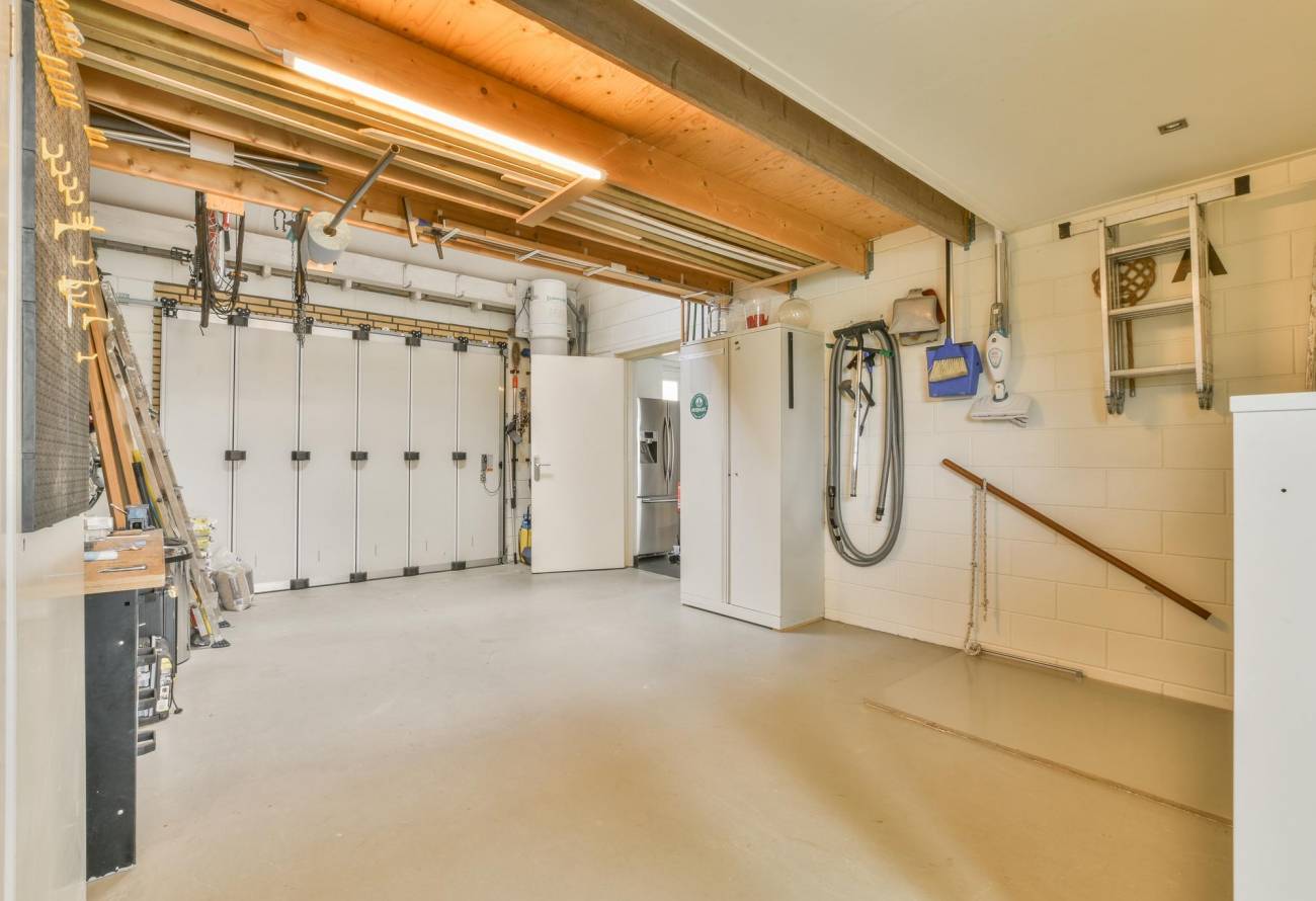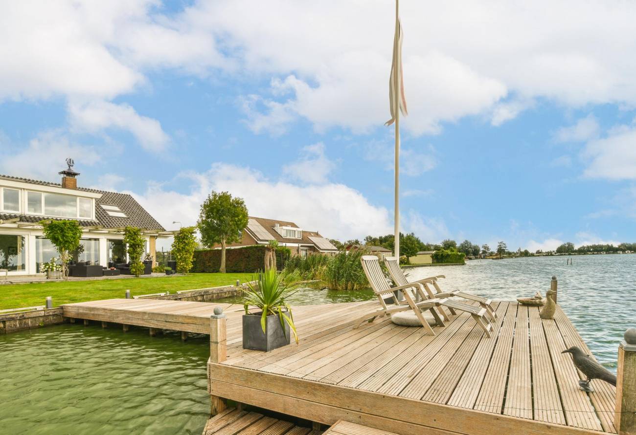 De fraaie tuin rondom is voor zien van diverse terrassen, een jollensteiger, eigen aanlegsteiger, een houten schuurtje en is gelegen aan het open water van de Langeraarse Plassen. Aan de voorzijde van de woning is een royale oprit.