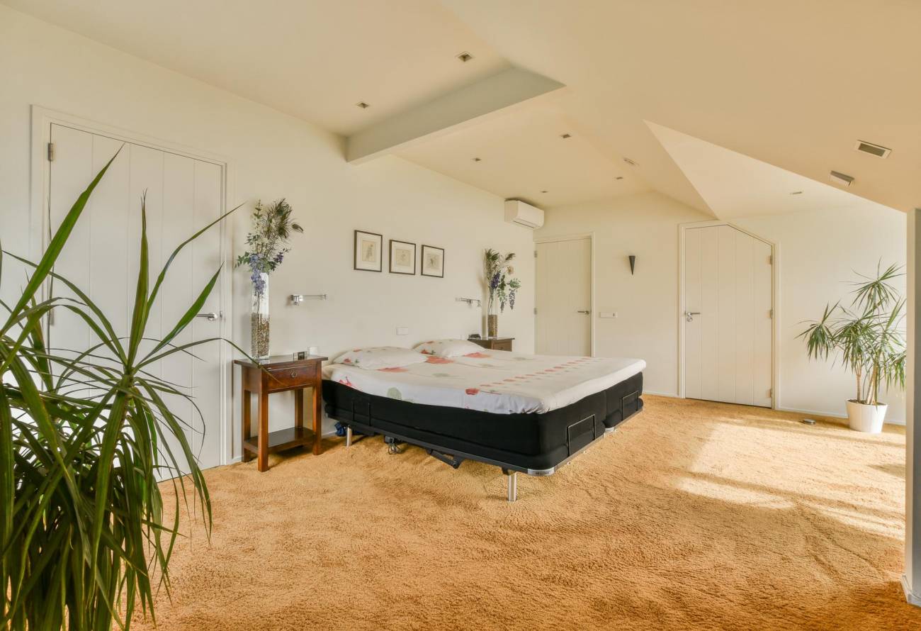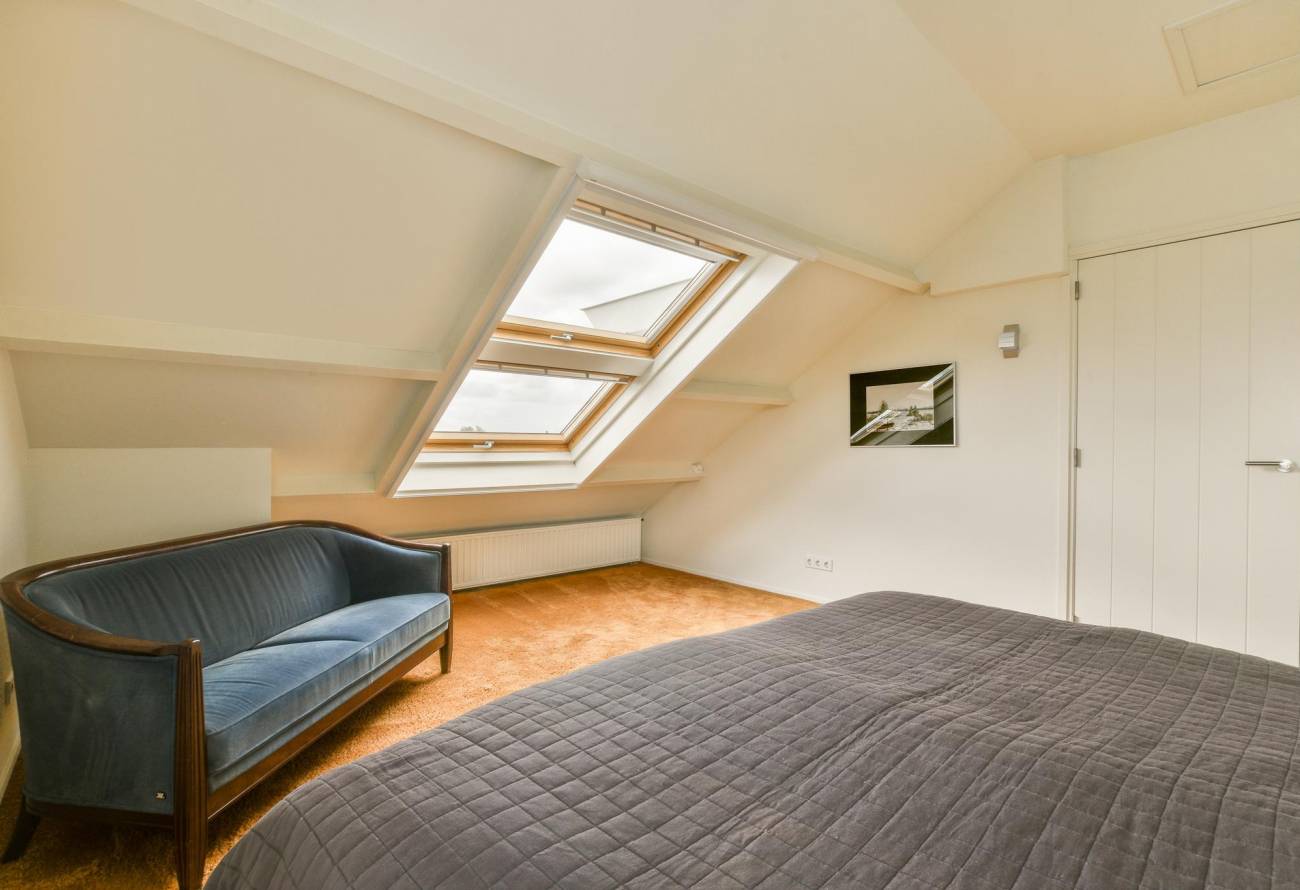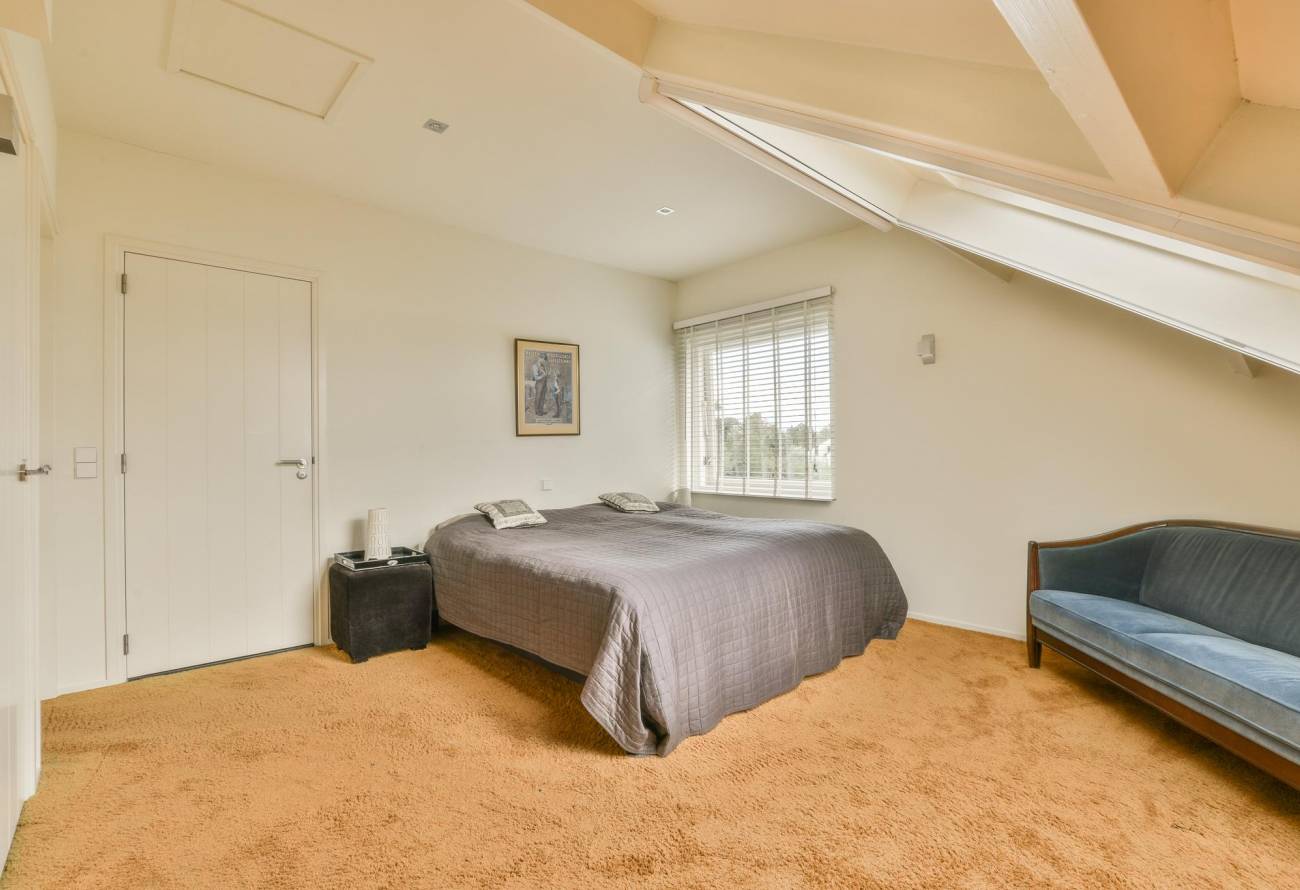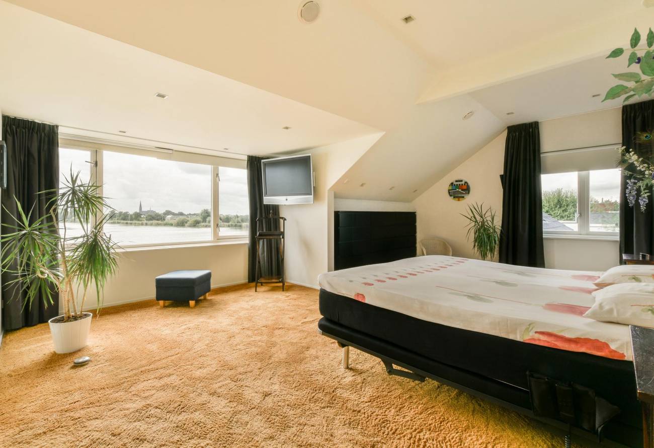 De ruime master-bedroom heeft een kleedkamer en een eigen luxe badkamer. Daarnaast is er op de verdieping nog een ruime slaapkamer met eigen luxe badkamer. De grote dakkapel aan de achterzijde van de woning geeft veel extra woonruimte en stahoogte maar ook een panoramisch uitzicht over de Plassen en de wijde omgeving.