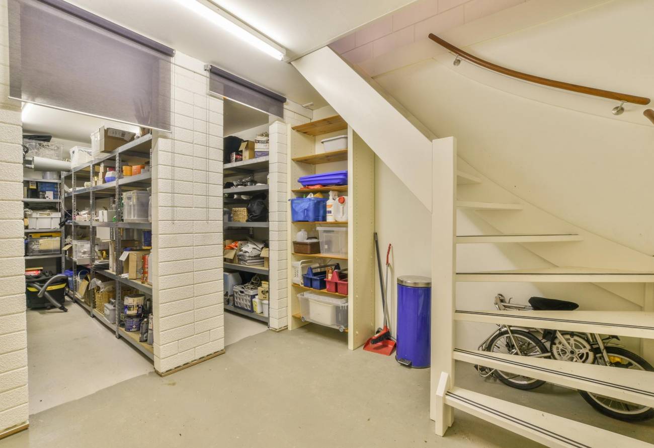 Ruime overloop met extra bergruimte onder het schuine dak en toegang tot de slaapkamers, kleedkamer en de 2e luxe badkamer.
